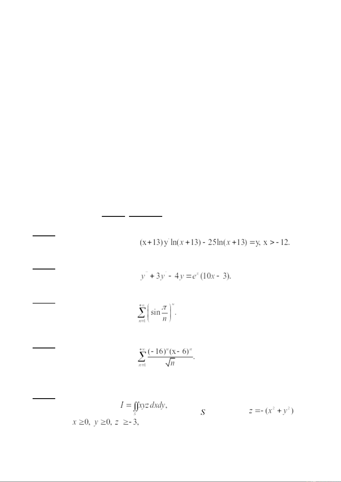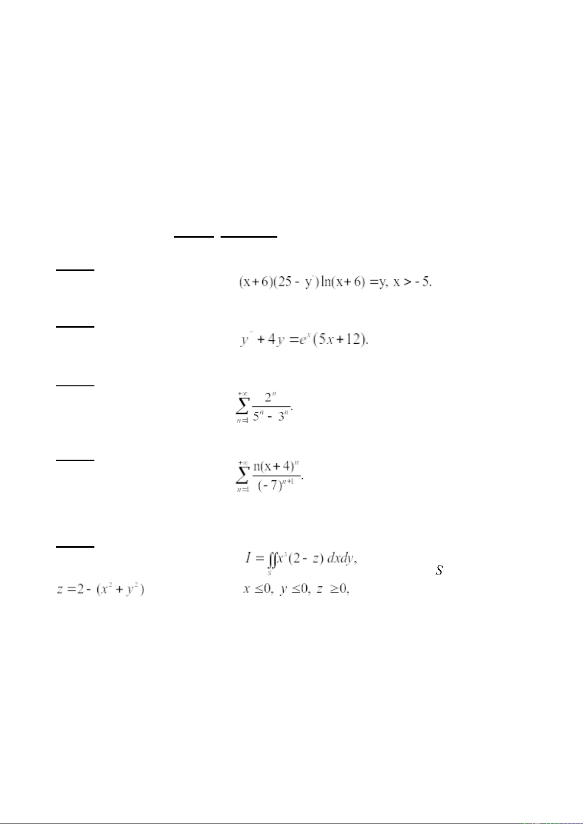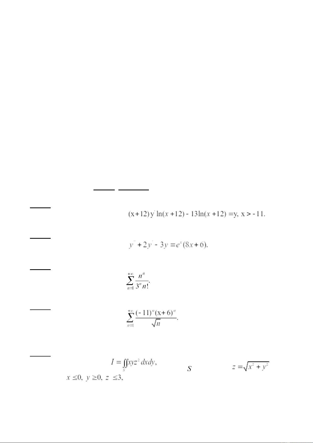 Tên học phần: Giải tích 2 (Đại trà) Mã học phần: 3190121 Hình thức thi: Tự luận Đề số: 06