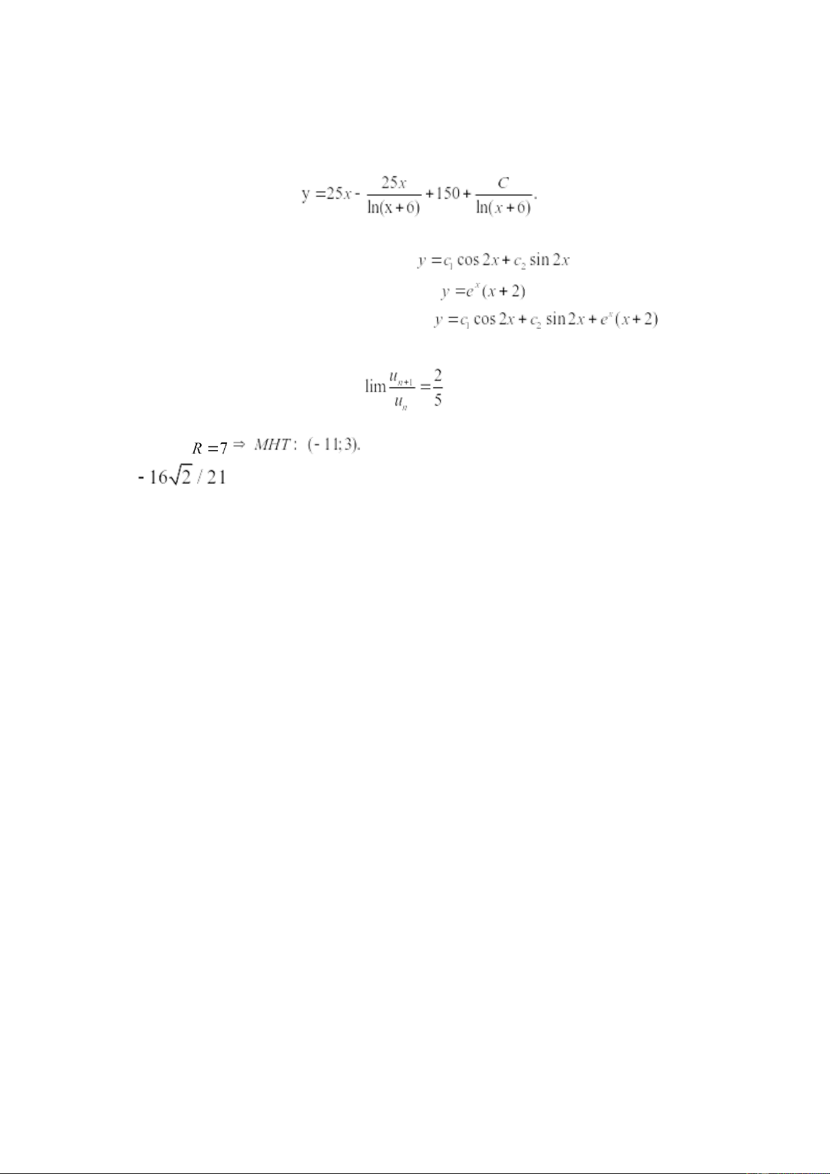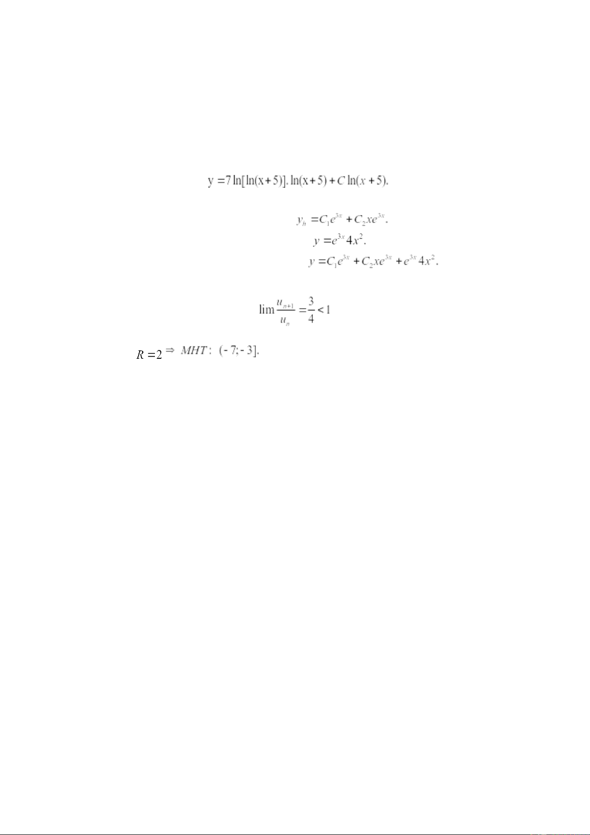 ta suy ra chuỗi đã cho hội tụ. Câu 4: BKHT Câu 5: -9/4.