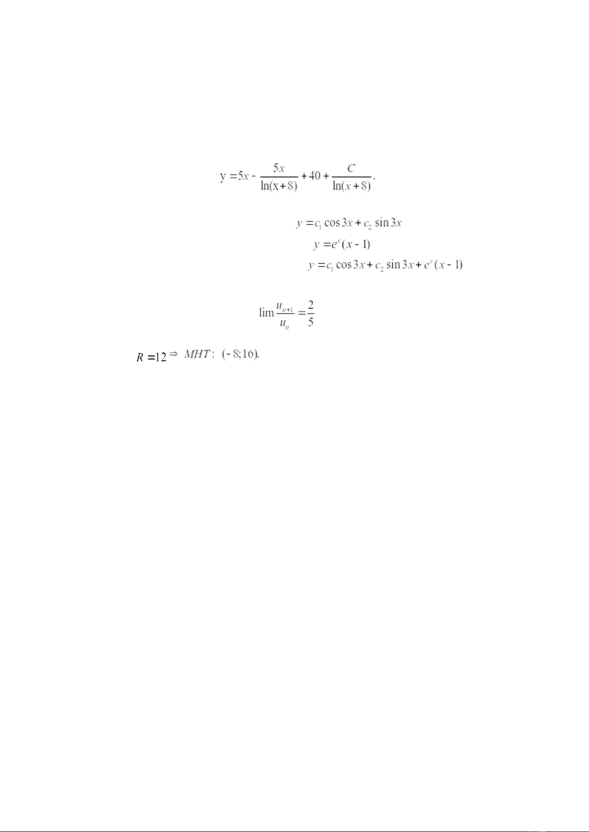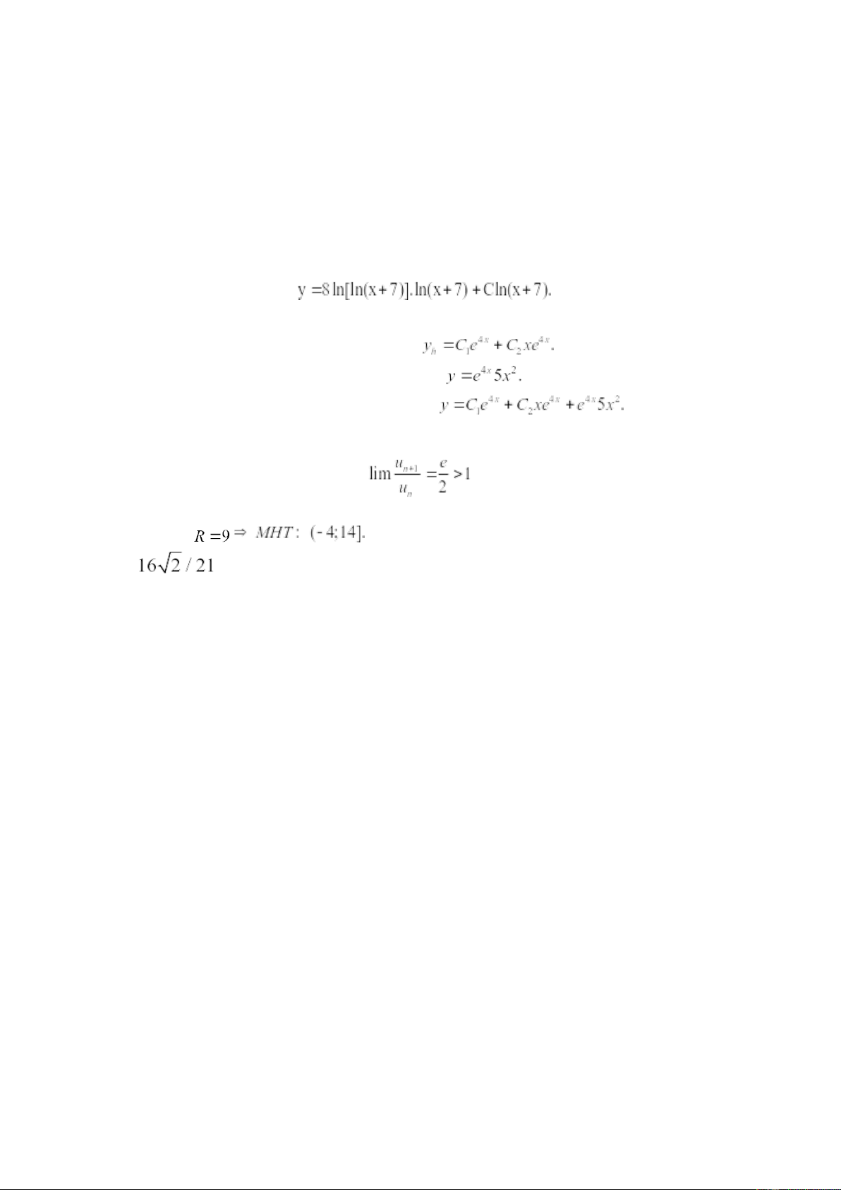ta suy ra chuỗi đã cho hội tụ. Câu 4: BKHT Câu 5: -64/9.