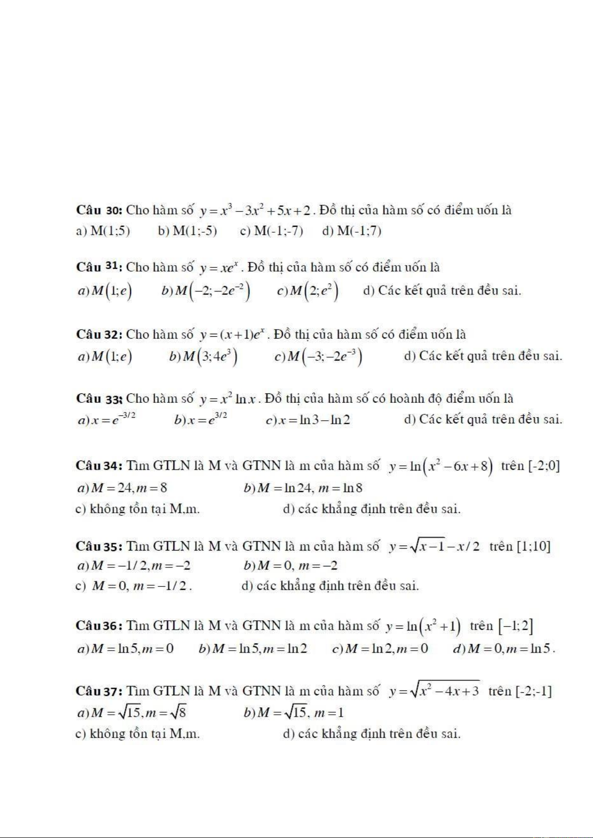 d) M e8, không có giá trị nhỏ nhất. 7 8