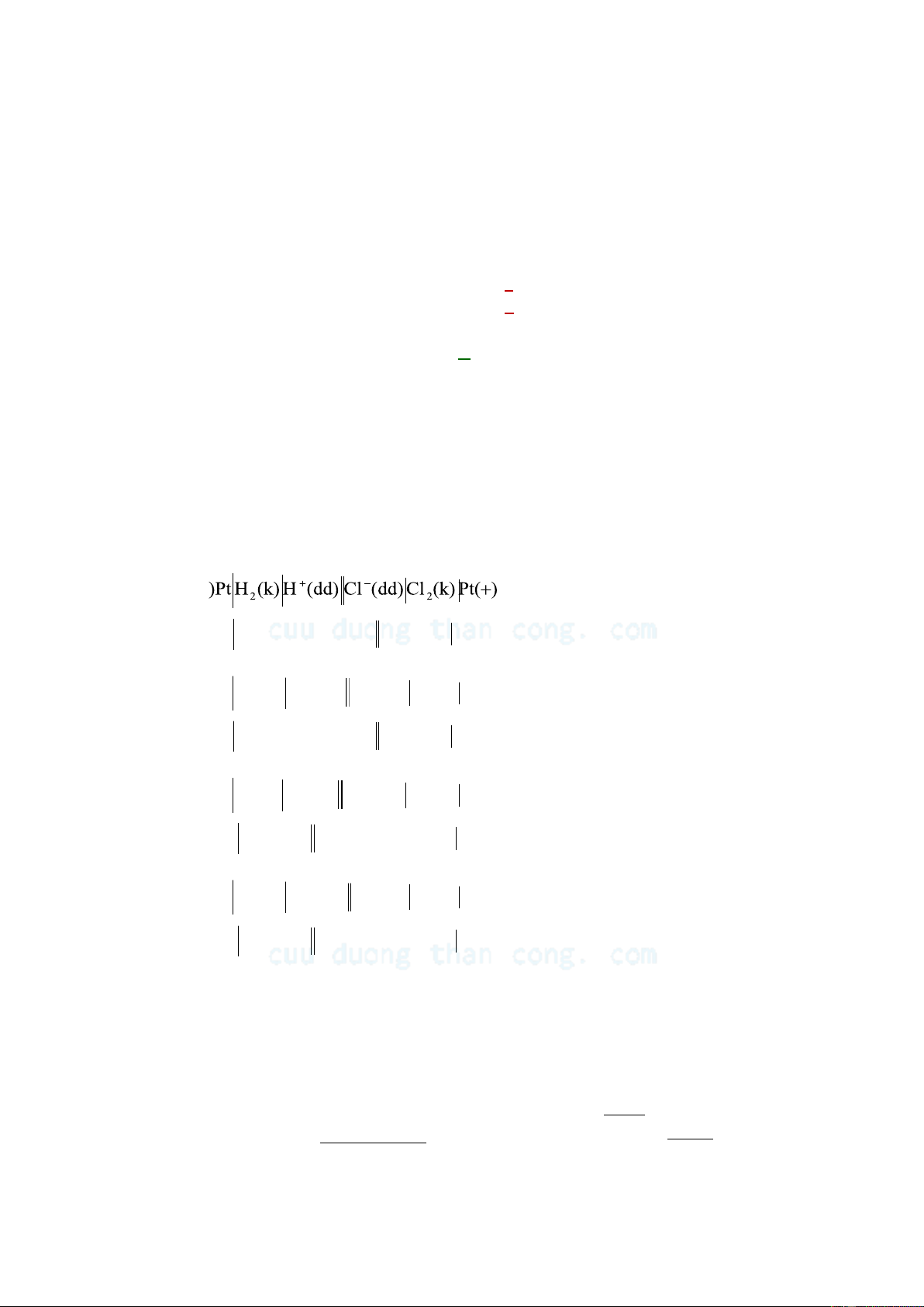 Sơ đồ các pin hoạt động trên cơ sở các phản ứng oxy hóa khử: H2(k) + Cl2 (k) = 2HCl(dd)