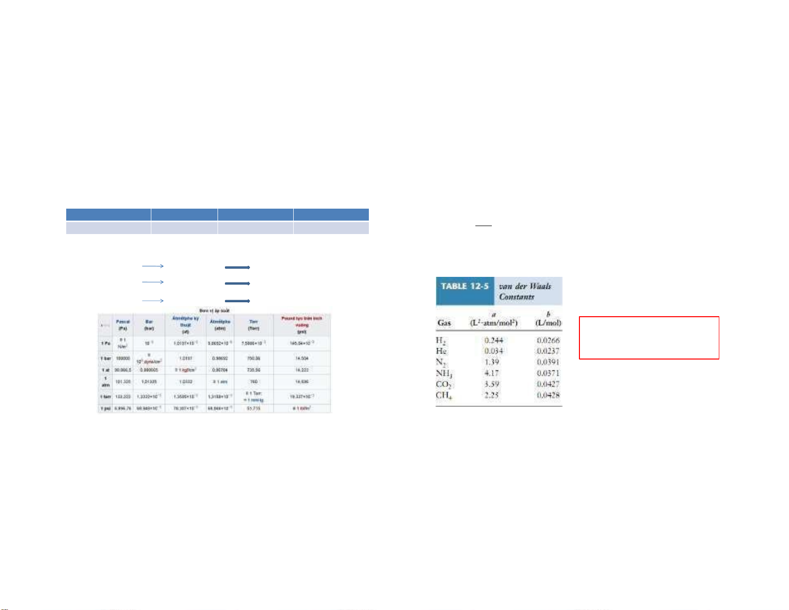 1.3.2. Phương trình trạng thái khí thực Đơn vị P, V N/m2, L Atm, L mmHg, mL n a 2 (P +