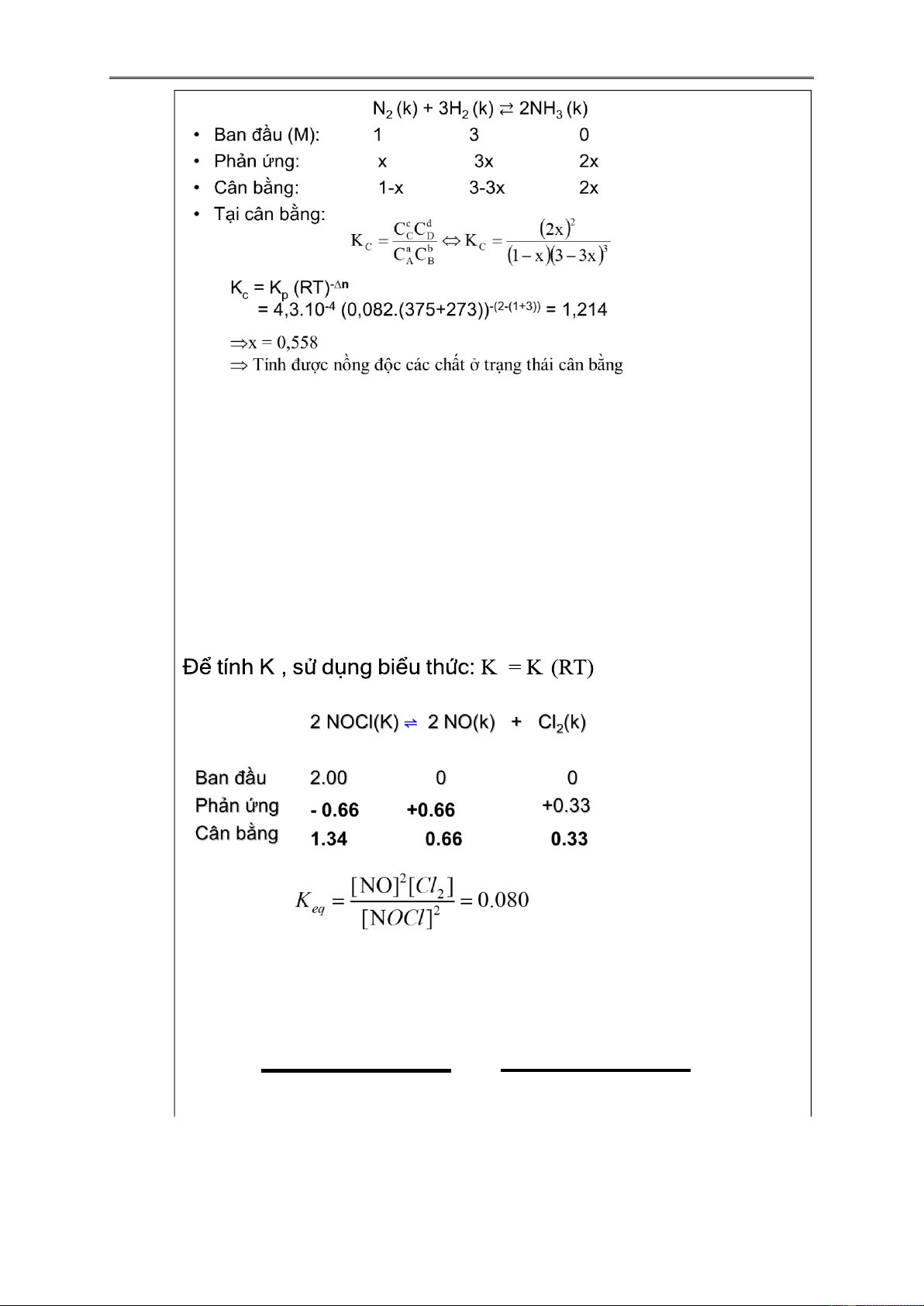 0.1207M H2, 0.0402M N2 và 0.0272M NH3. Tính hằng số cân bằng Kc và Kp.