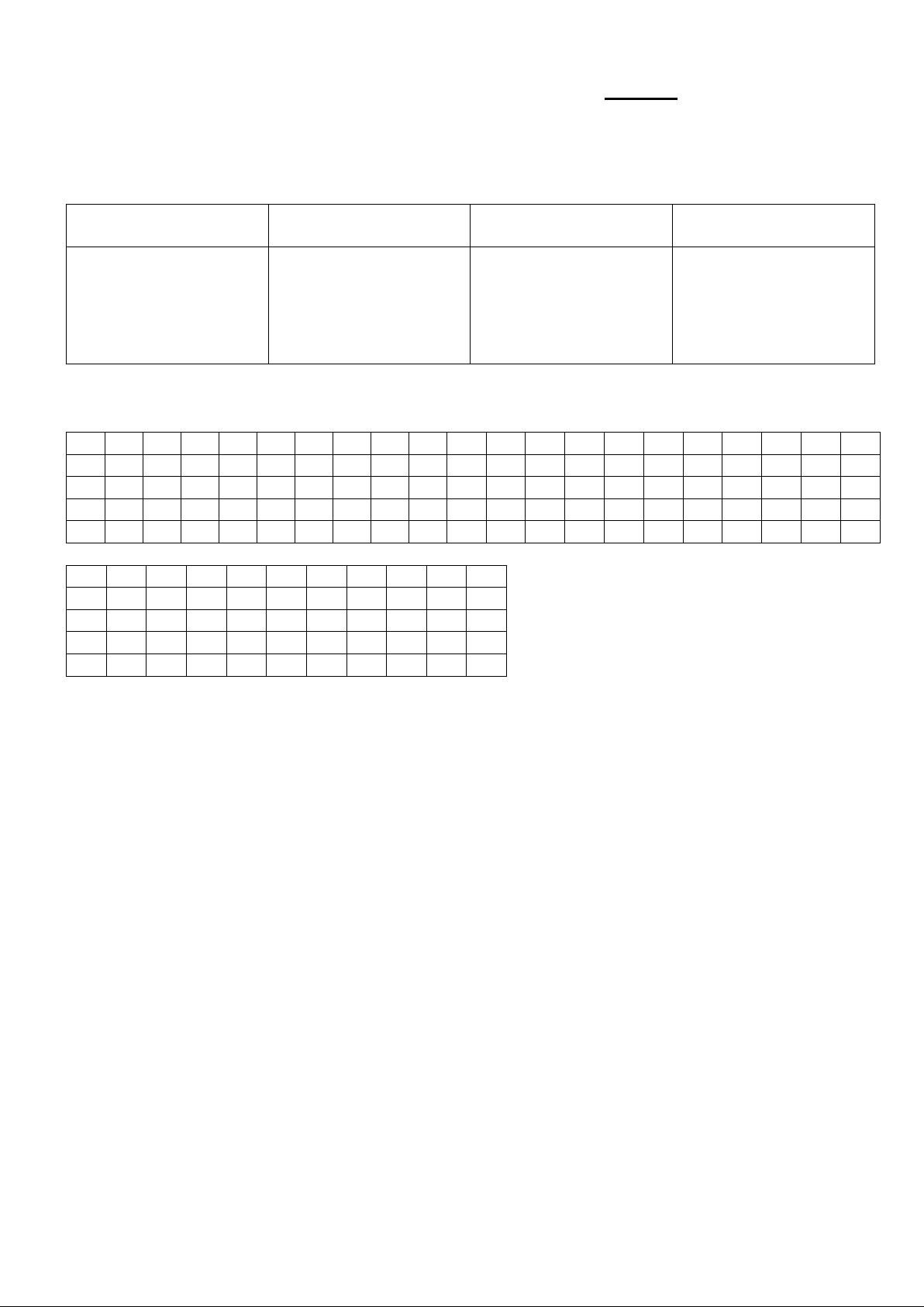 Chữ ký SV:…………………Buổi học (sáng hay chiều? Thứ mấy? Tiết mấy?):……………………….. Chữ ký Giám thị Chữ ký Giám khảo Số câu đúng