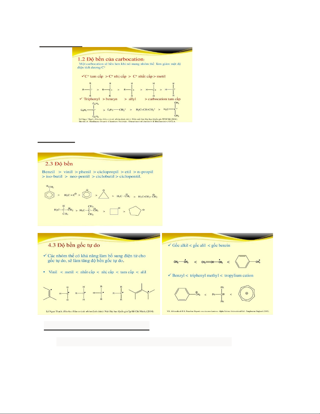 5. Khái niệm gốc tự do, carbocation, carbanion. Độ ổn định (độ bền)