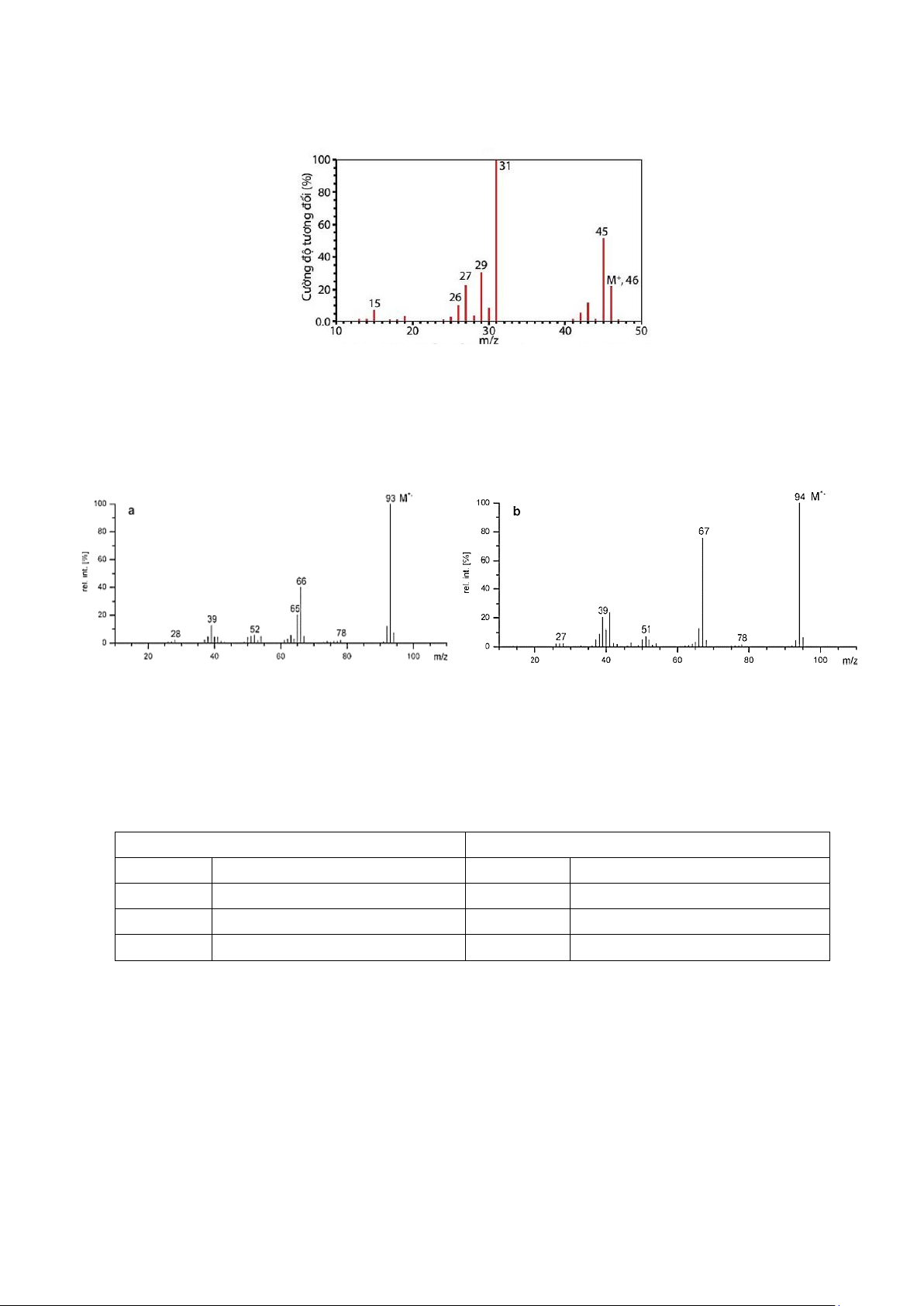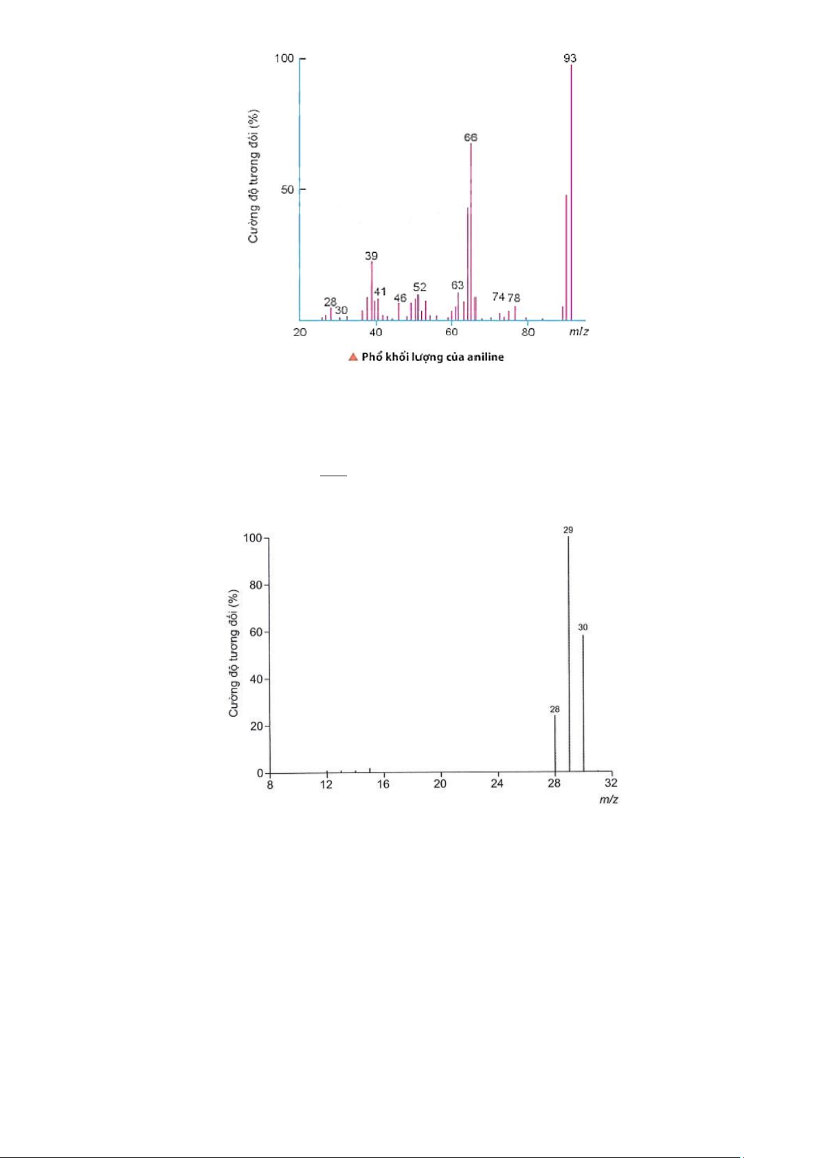 aniline được xác định trên phổ khối lượng nguyên tử tương ứng với peak có cường độ tương đối mạnh nhất. Trang 13