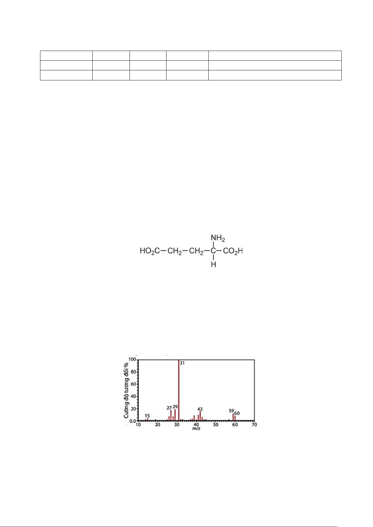 Câu 11. Hai hợp chất X, Y có cùng công thức đơn giản nhất là CH2O. Phổ MS cho biết X và Y có những tín hiệu như sau Chất X Chất Y m/z