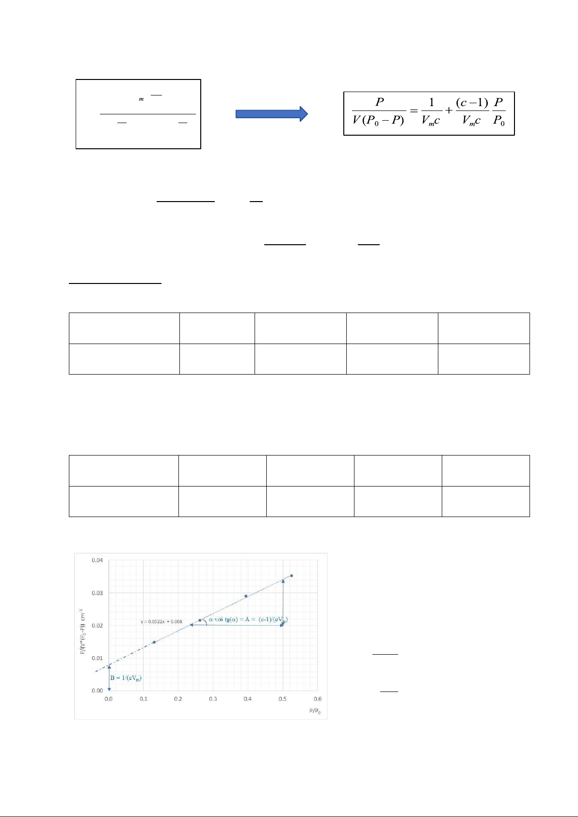 tích khí hấp phụ đơn lớp – V ”, và thể tích bị hấp phụ V ở áp suất P và xác m