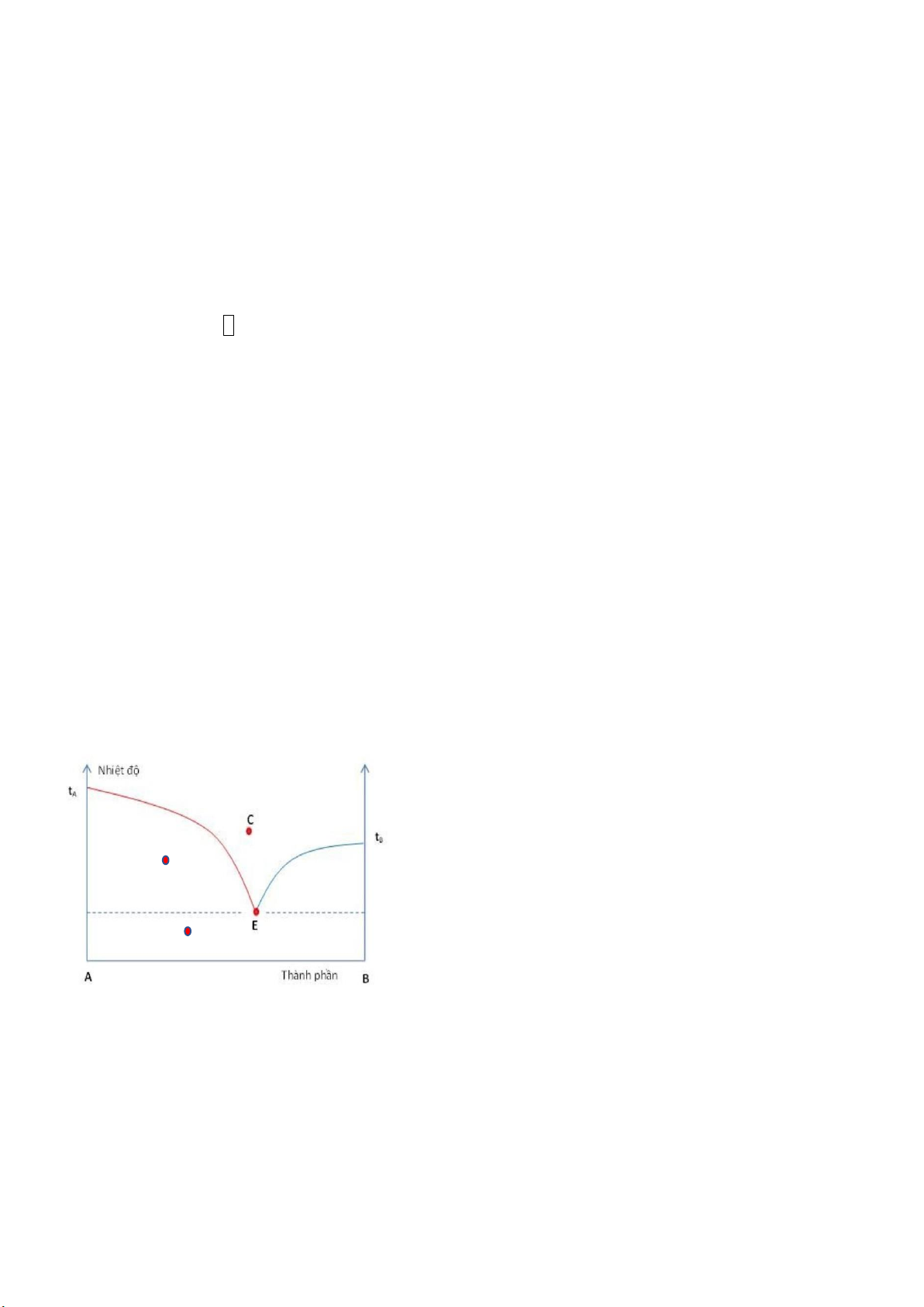 Câu 5 (0,5 điểm): Giản đồ trạng thái cân bằng lỏng-rắn hệ hai cấu tử không tạo thành hợp chất hóa học cho dưới đây.