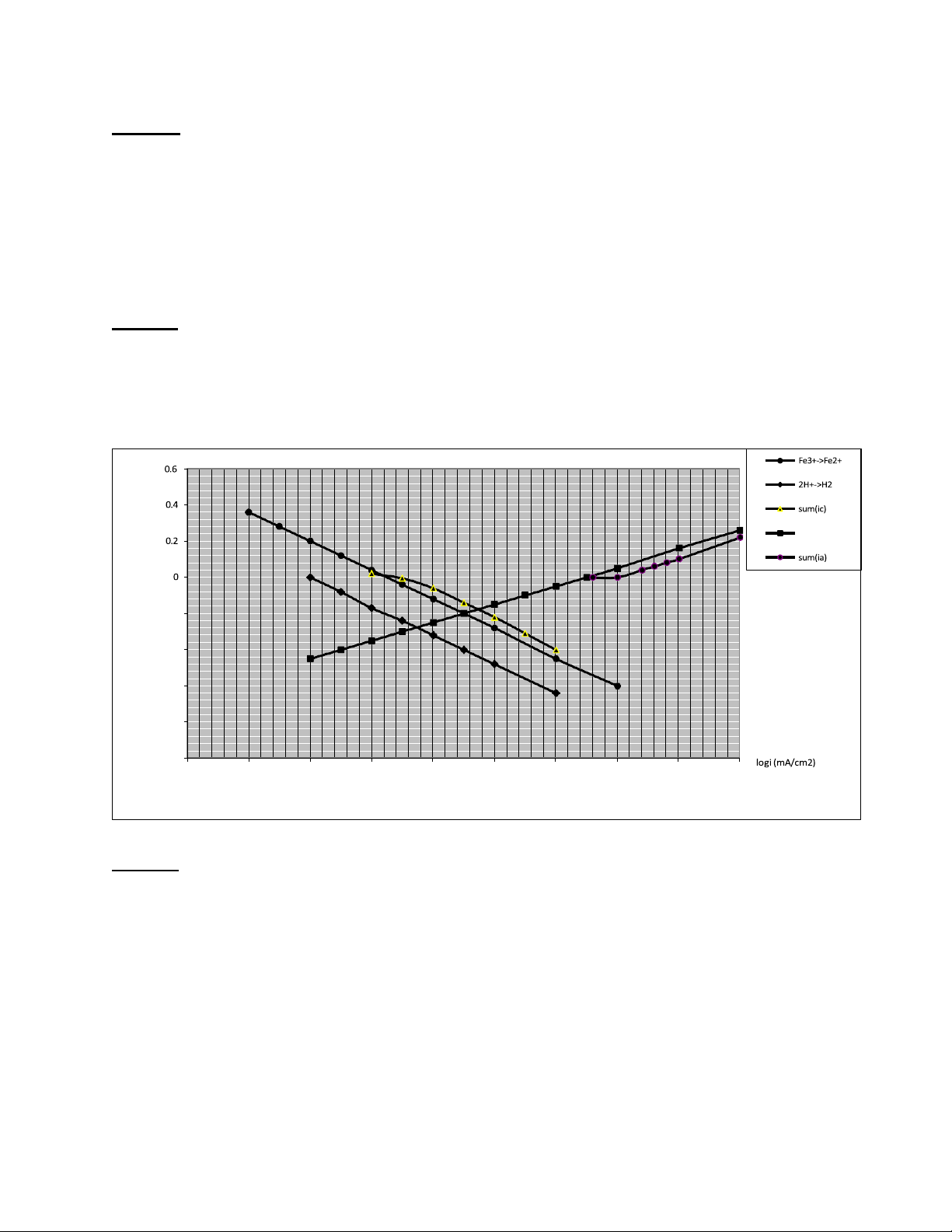 1/ Hãy xác định điện thế ăn mòn (Ecorr) và tốc độ ăn mòn (icorr) của sắt.