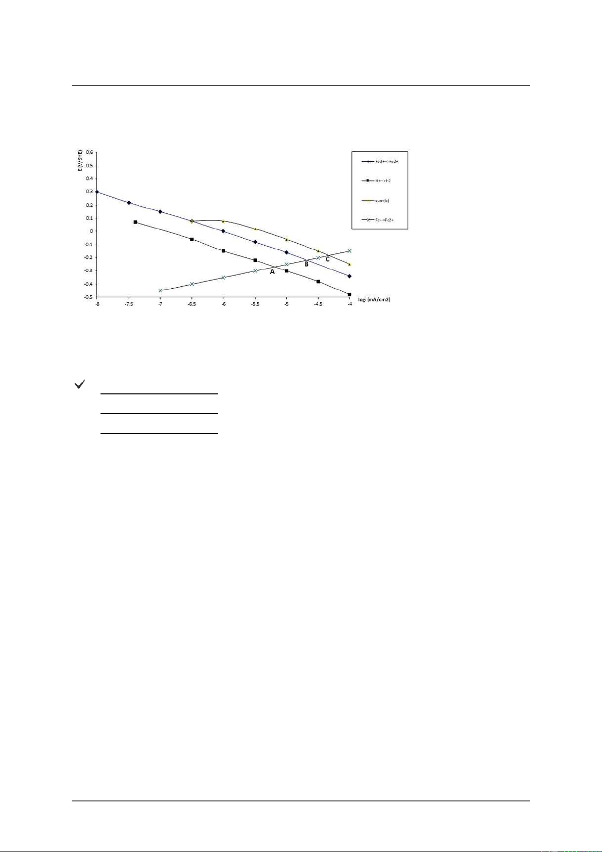 3/ Tốc độ ăn mòn của sắt trong môi trường axit có mặt chất oxy hoá A. 1/ i =10-5,2 (mA/cm2) corr,Fe 2/ i = 10-4,7 (mA/cm2) corr,Fe 3/ i = 10-4,3 (mA/cm2) corr,Fe B. 1/ i =10-4,7 (mA/cm2) corr,Fe 2/ i = 10-5,2 (mA/cm2) corr,Fe 3/ i = 10-4,3 (mA/cm2) corr,Fe C. 1/ i =10-4,7 (mA/cm2) corr,Fe 2/ i = 10-4,3(mA/cm2) corr,Fe 3/ i = 10-5,2 (mA/cm2) corr,Fe Score: 9/9p. 2