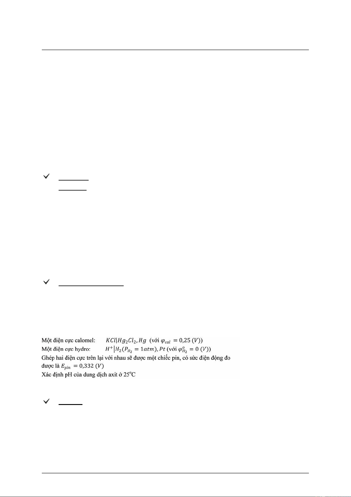 D. Sơ đồ pin: (-) Cd | CdCl || PbCl | Pb (+) 2 2 E = 0,276 (V) pin Score: 9/9p. 1