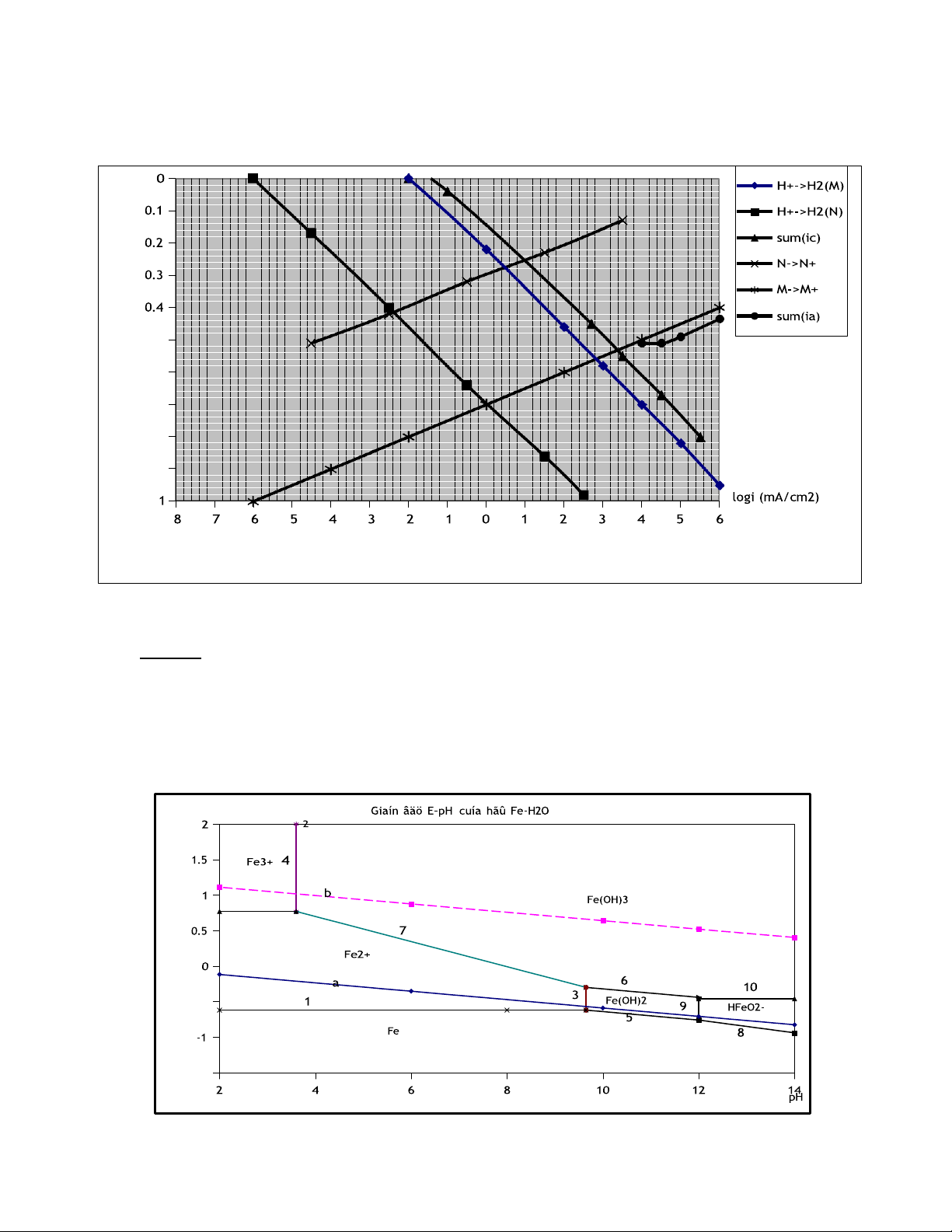 =10−7 A/ cm2; β a =0 . 25 V Fe2+ /Fe Phản ứng: Fe = Fe2+ + 2e; 0 ,Fe2 + /Fe Ecb