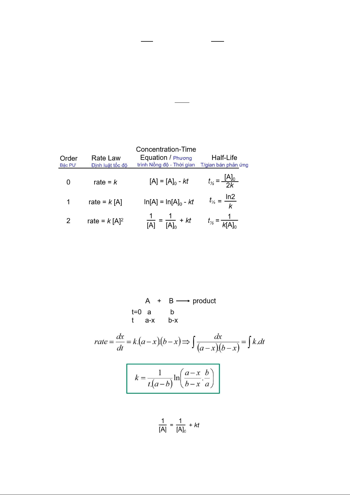 Biểu diễn toán học của thời gian bán phản ứng: Xét phản ứng A → B Tại t = 0: [A] = [A]0; Khi t = t1/2: [A] = [A]0/2