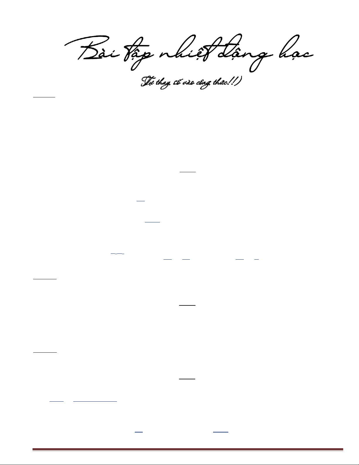 Câu 1: Một hệ kín chứa 50g khí Argon (MAr = 39,94 g/mol; giả sử cho khí là lý