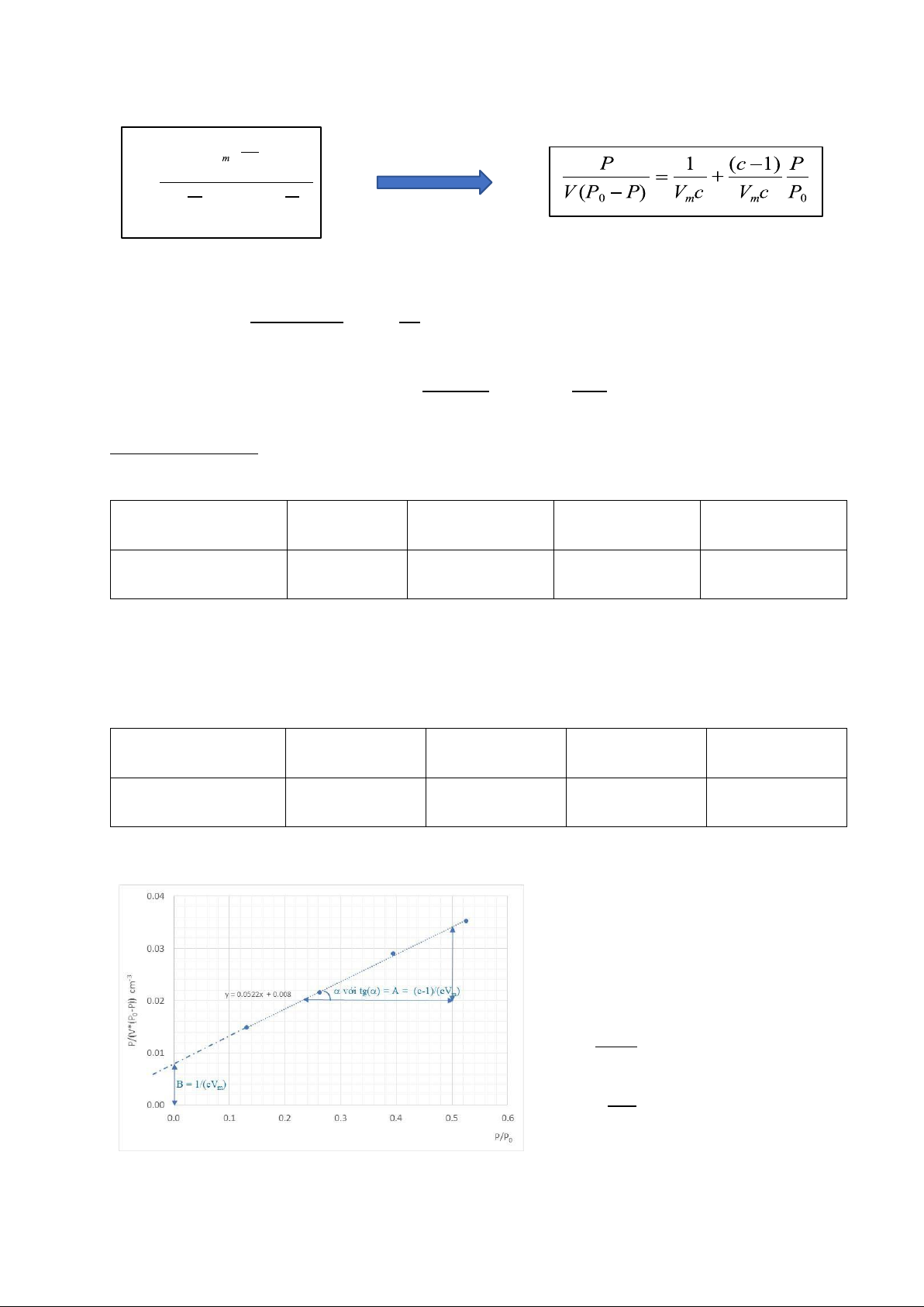 tích khí hấp phụ đơn lớp – Vm”, và thể tích bị hấp phụ V ở áp suất P và xác