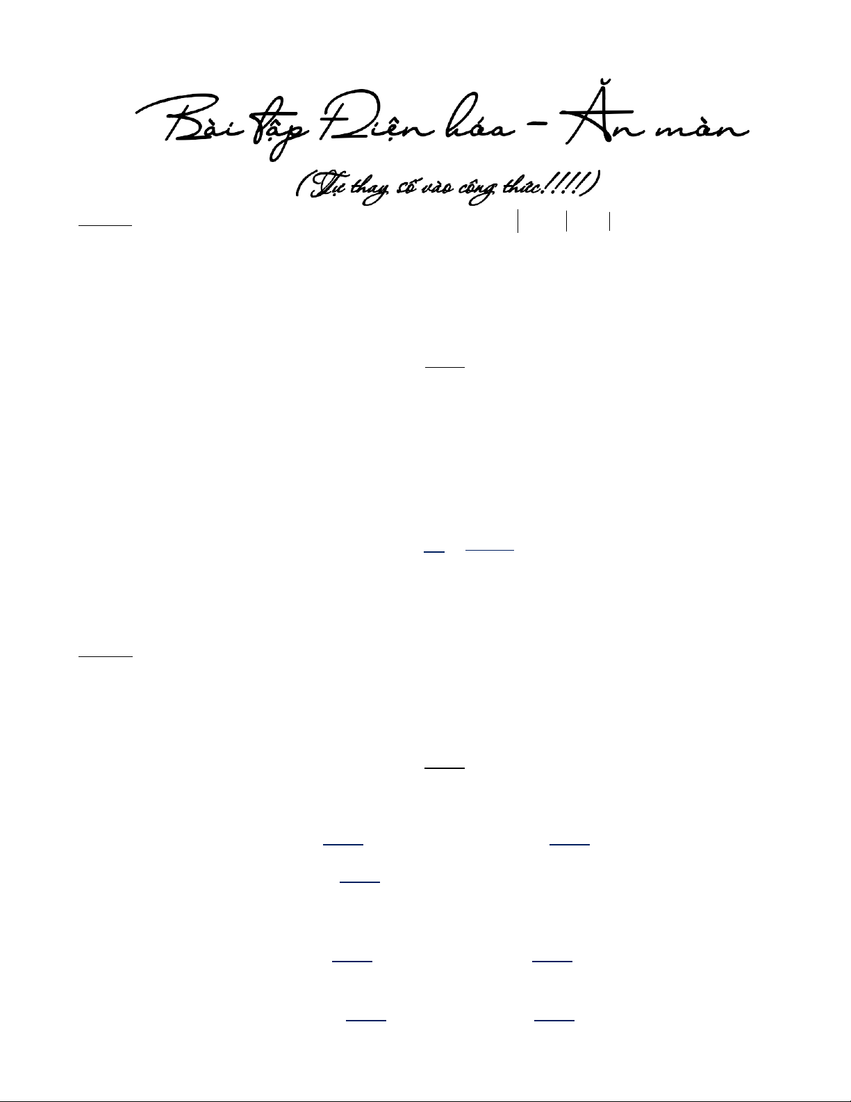 2/ + = 𝐻g 𝐶𝑙 /𝐻g = 0,25 (𝑉) 2 2 𝑅𝑇 (𝑎 𝐻+)2 = = 𝑜 + 𝑙𝑛 = 0,0125𝑙𝑛(𝑎 − 𝐻 + 𝐻+ )2 𝐻+/𝐻2 /𝐻2 𝑛𝐹 𝑝𝐻2