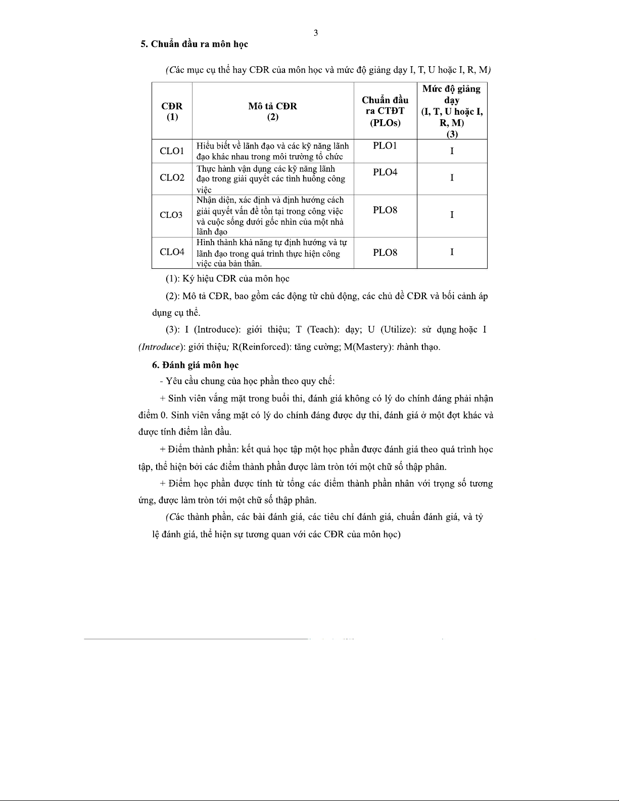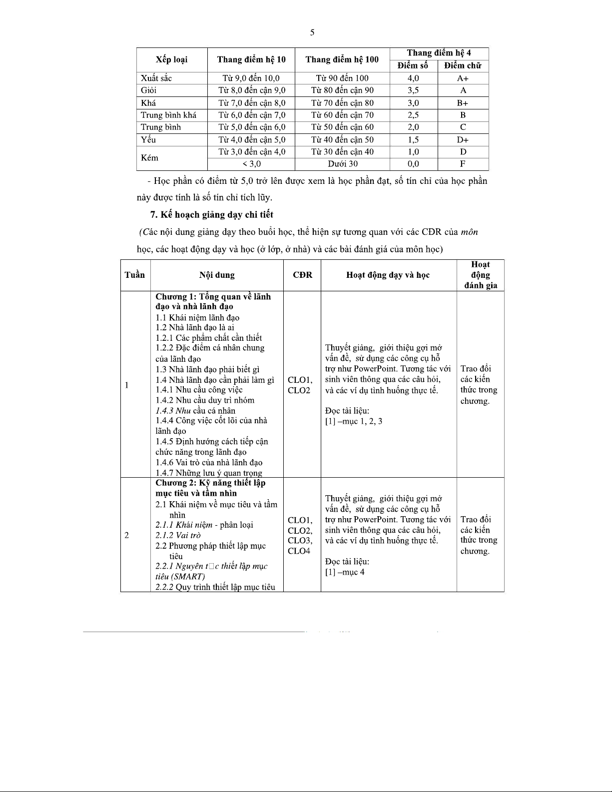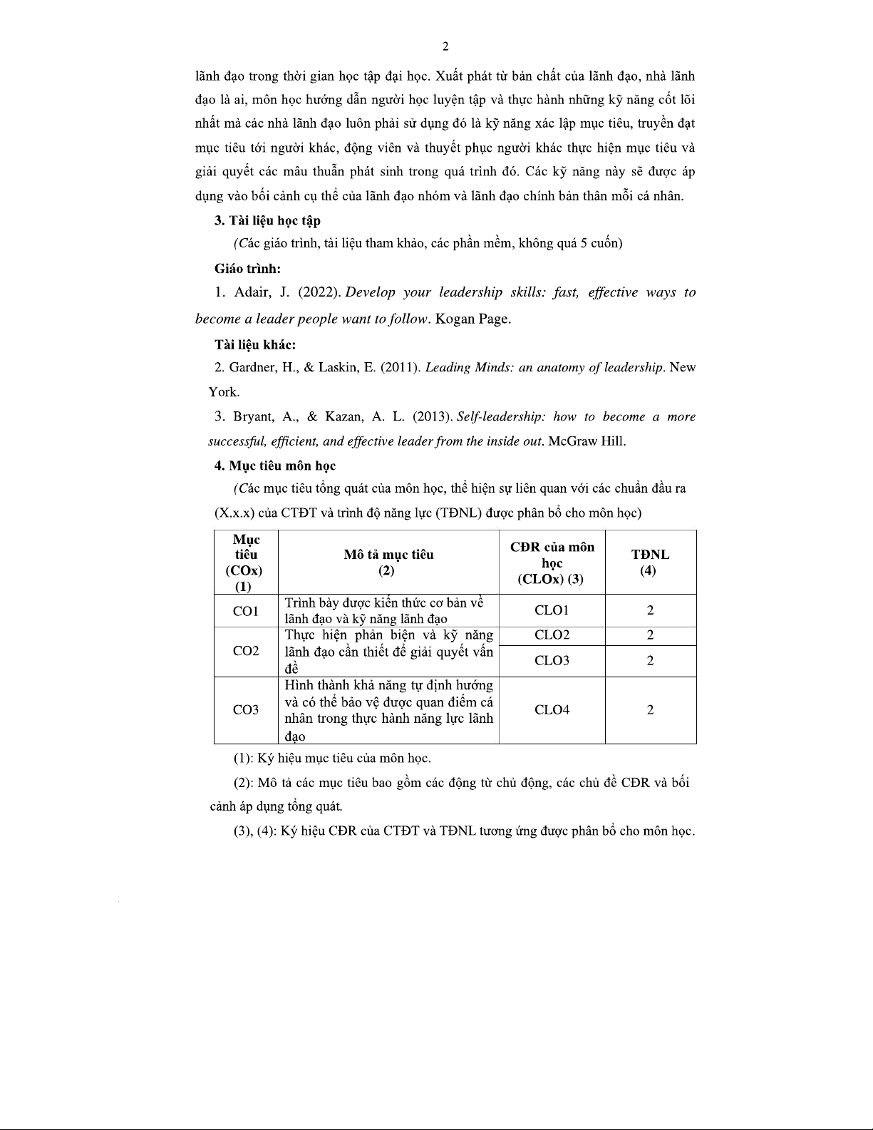 Đề cương môn học KỸ NĂNG LÃNH ĐẠO (BUS13 20) - Phiên bản 2