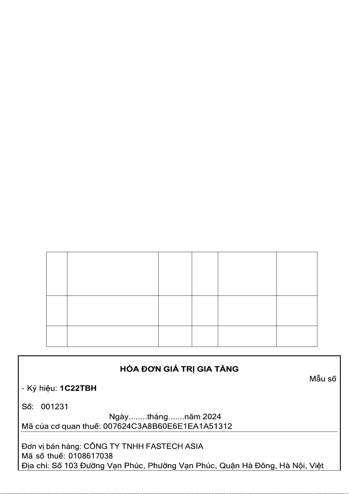 FASTECH HÓA ĐƠN SỐ 0132 NGÀY 3/10/2024