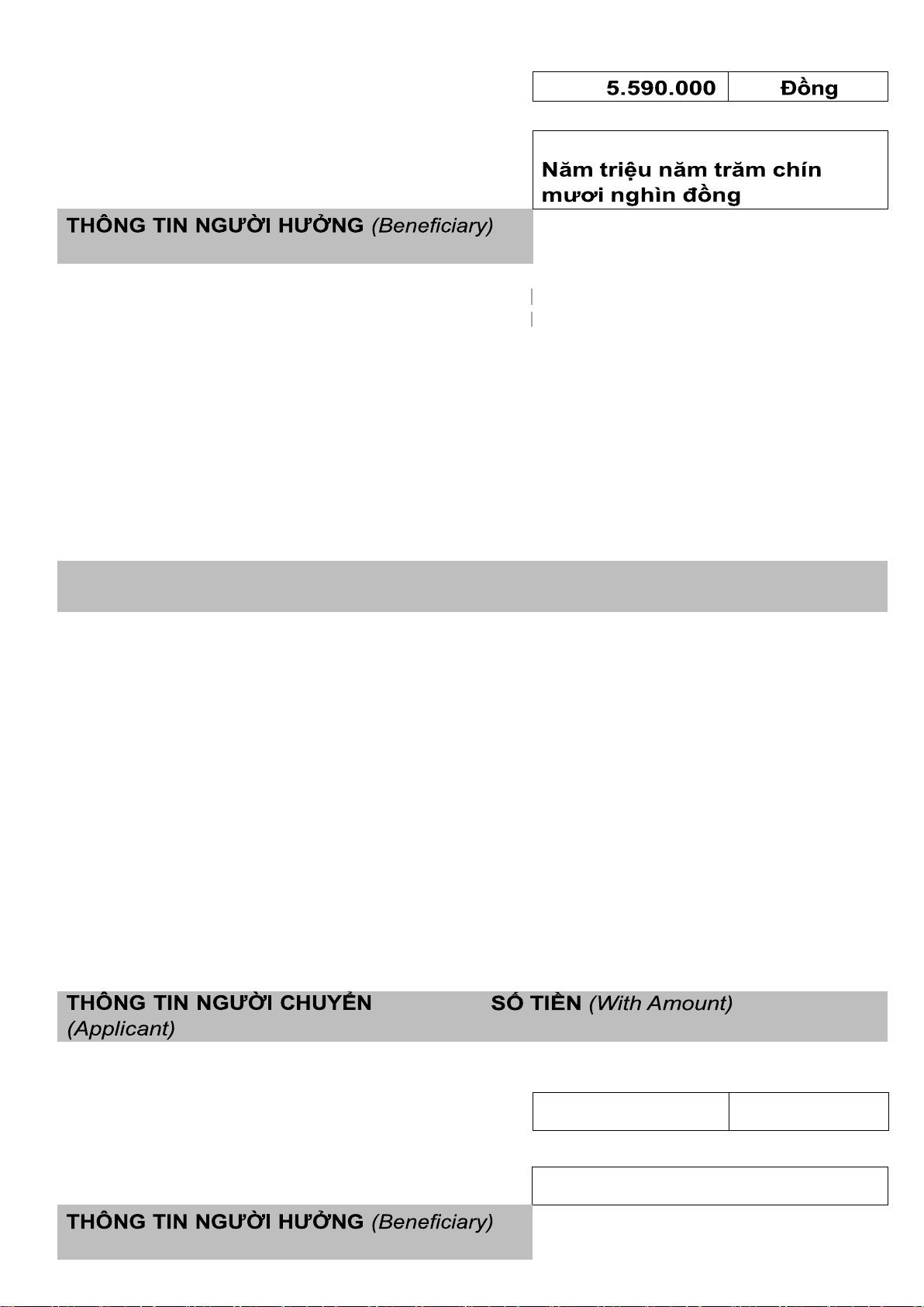 Đơn vị/Người hưởng ( Beneficiary):