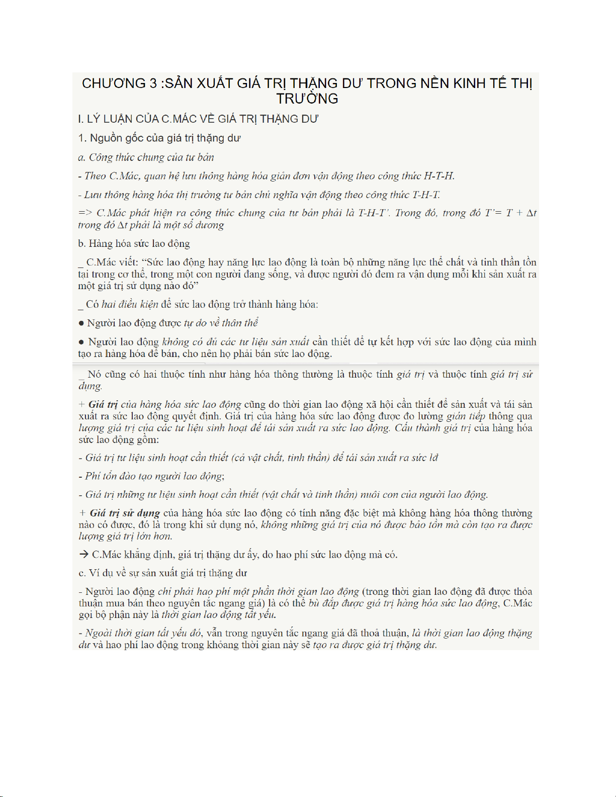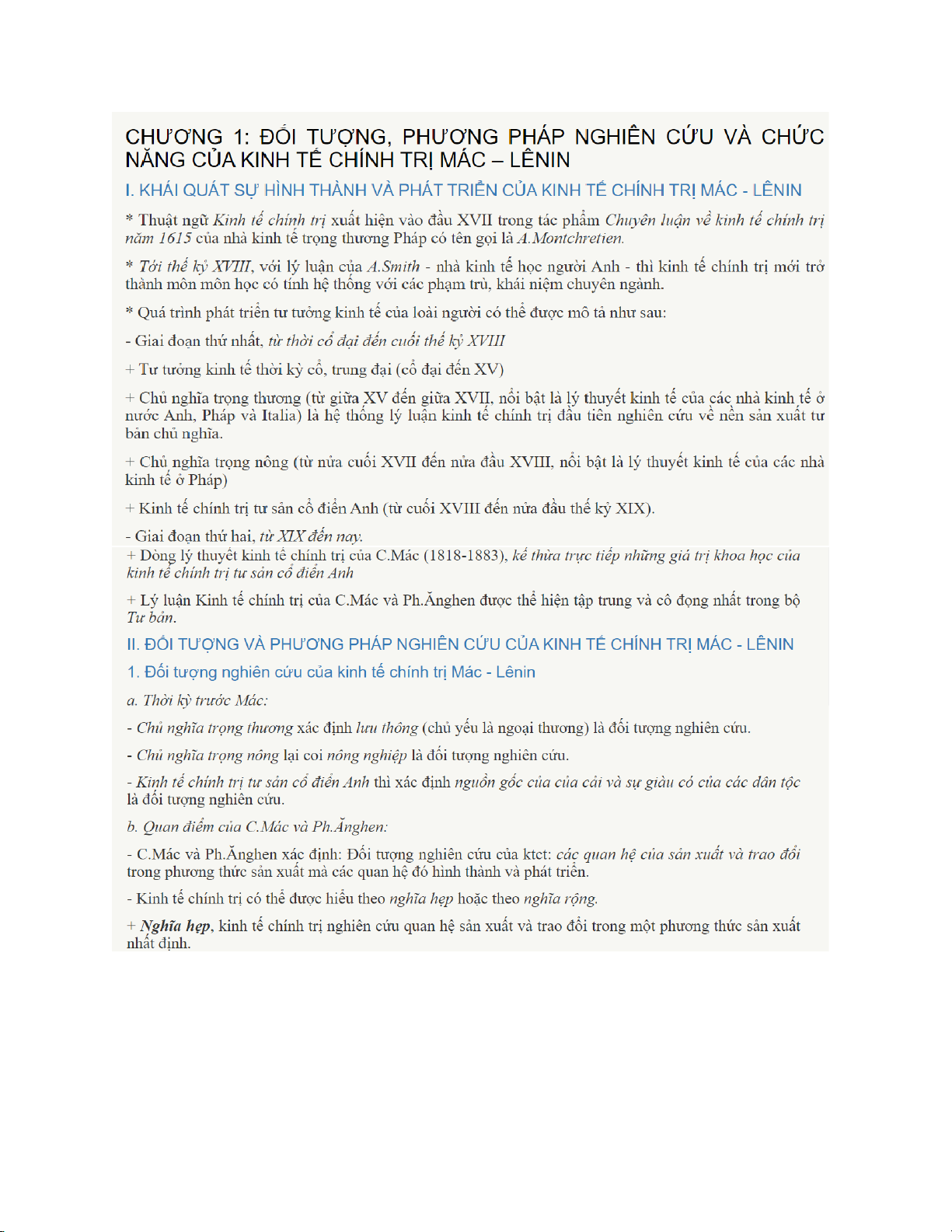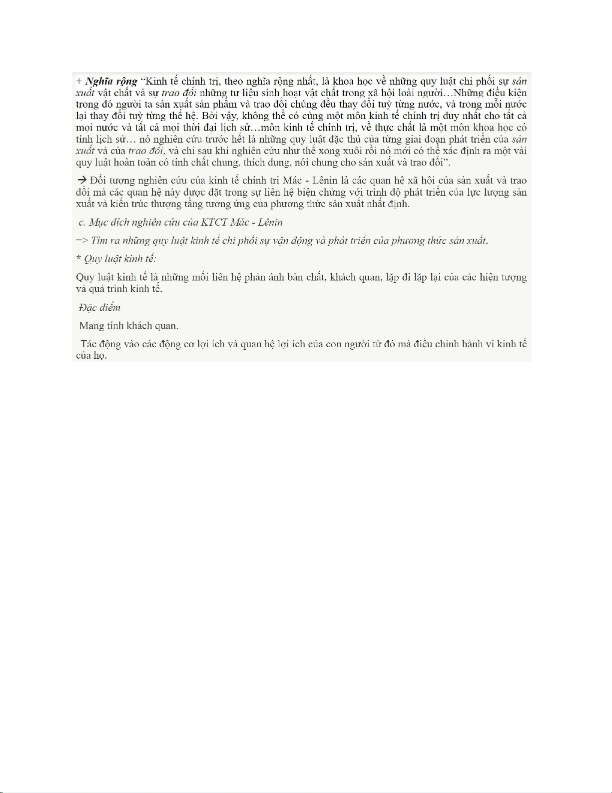 Đề cương môn Kinh tế chính trị Mac Lênin - trường đại học kinh tế Quốc dân.