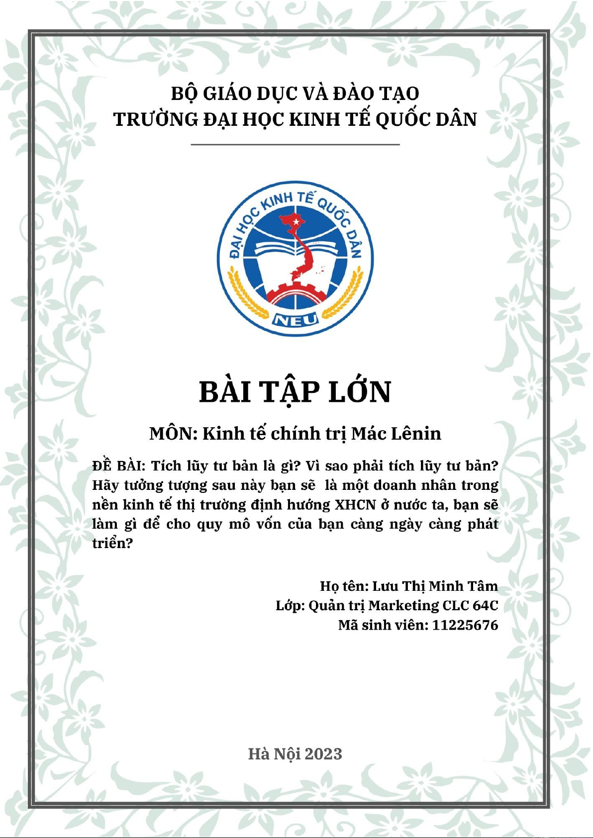 - Viện đào tạo chất lượng cao - Tiểu luận tích lũy tư bản đối với sự phát triển