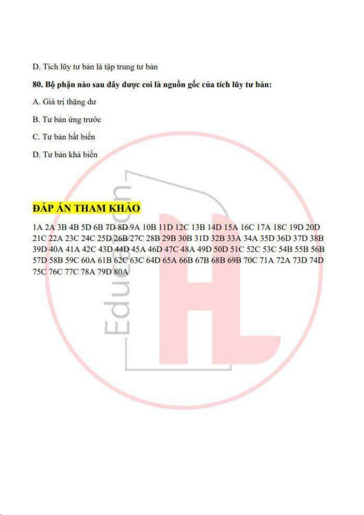 Đề cương môn Kinh tế chính trị Mac Lênin - trường đại học kinh tế Quốc dân