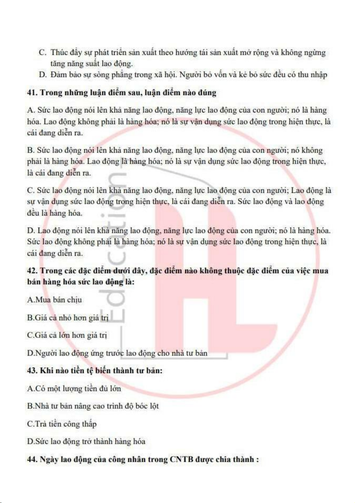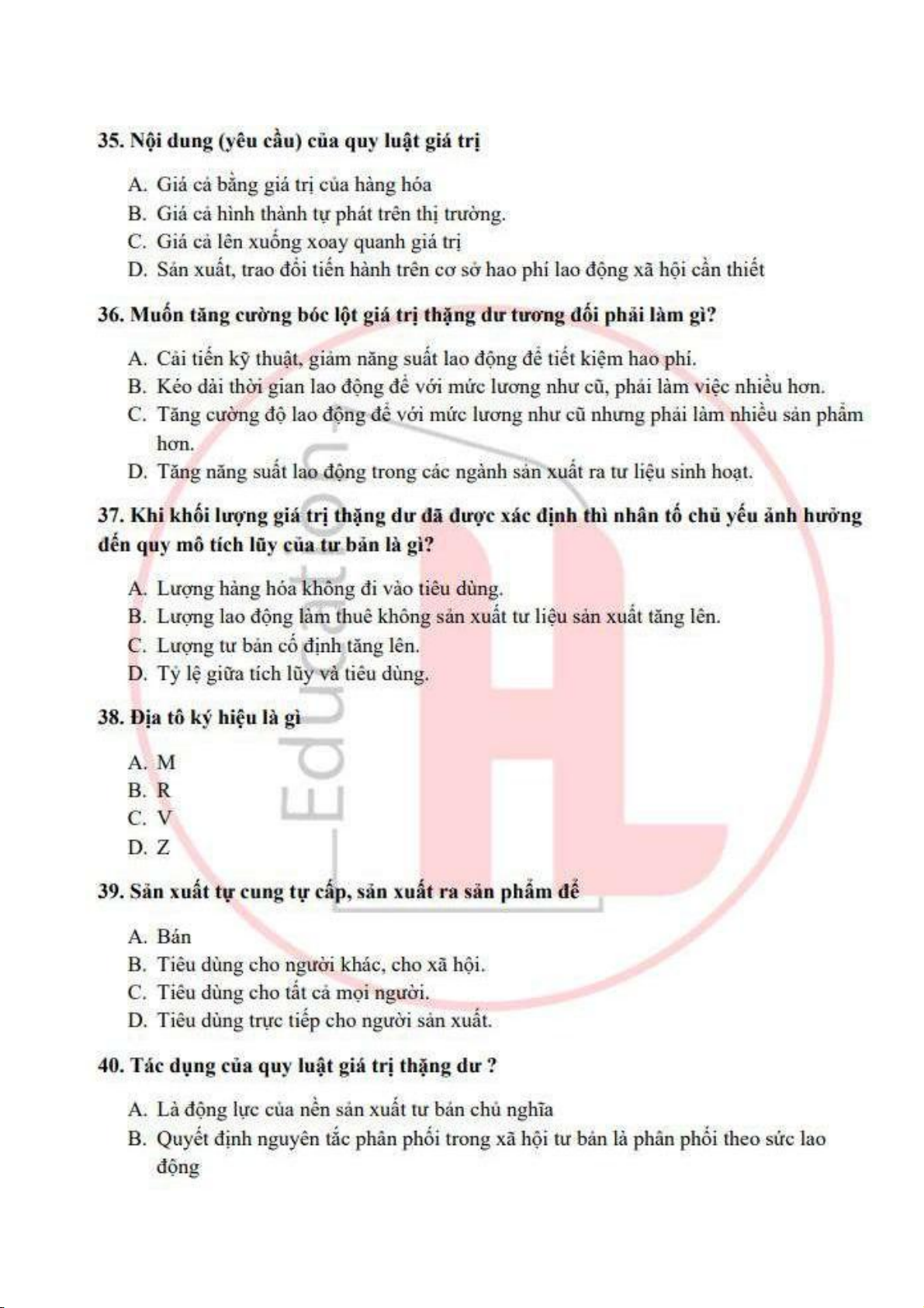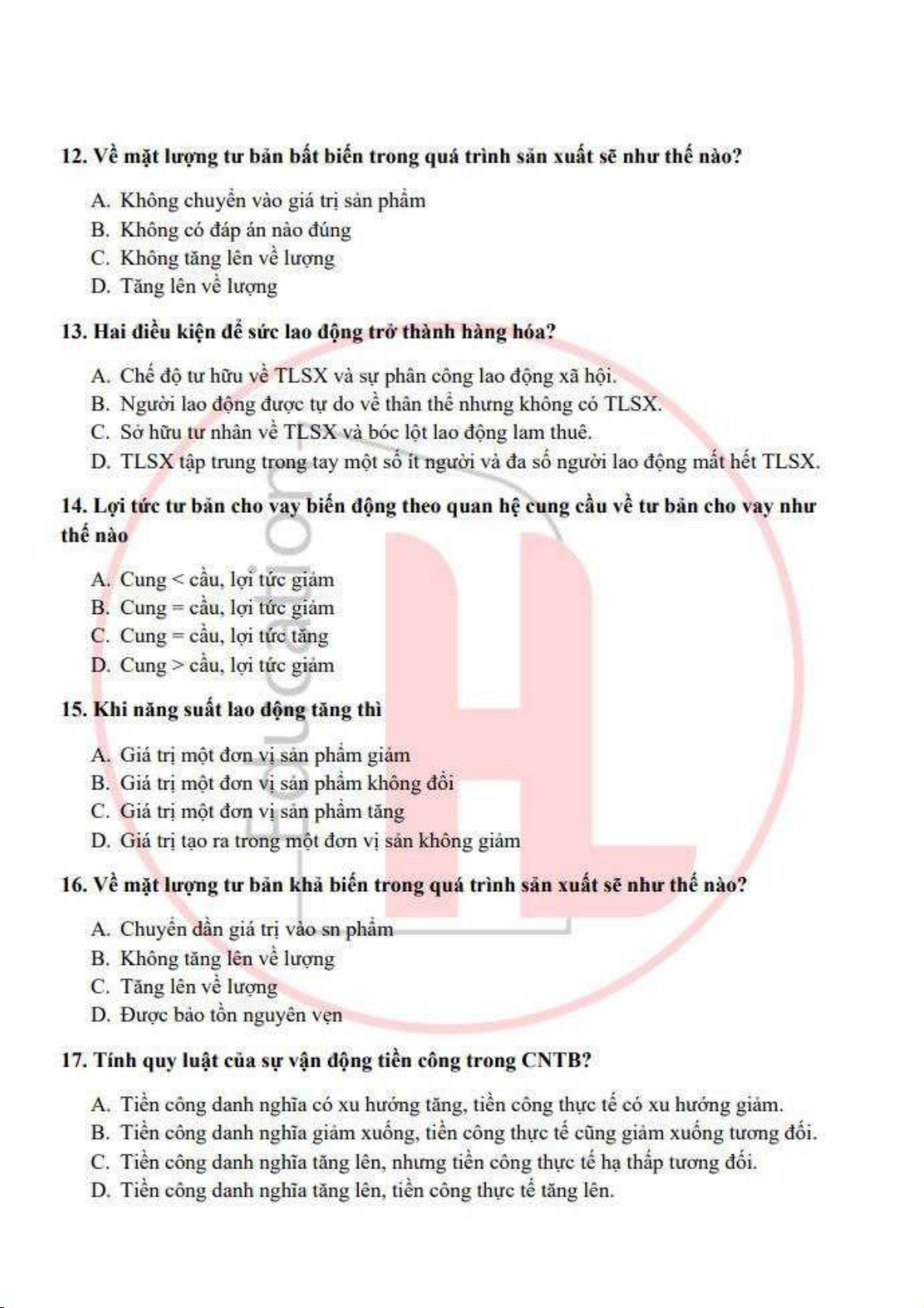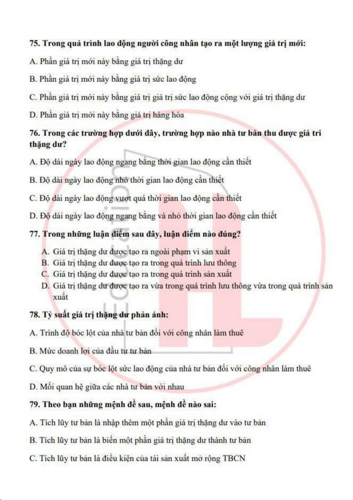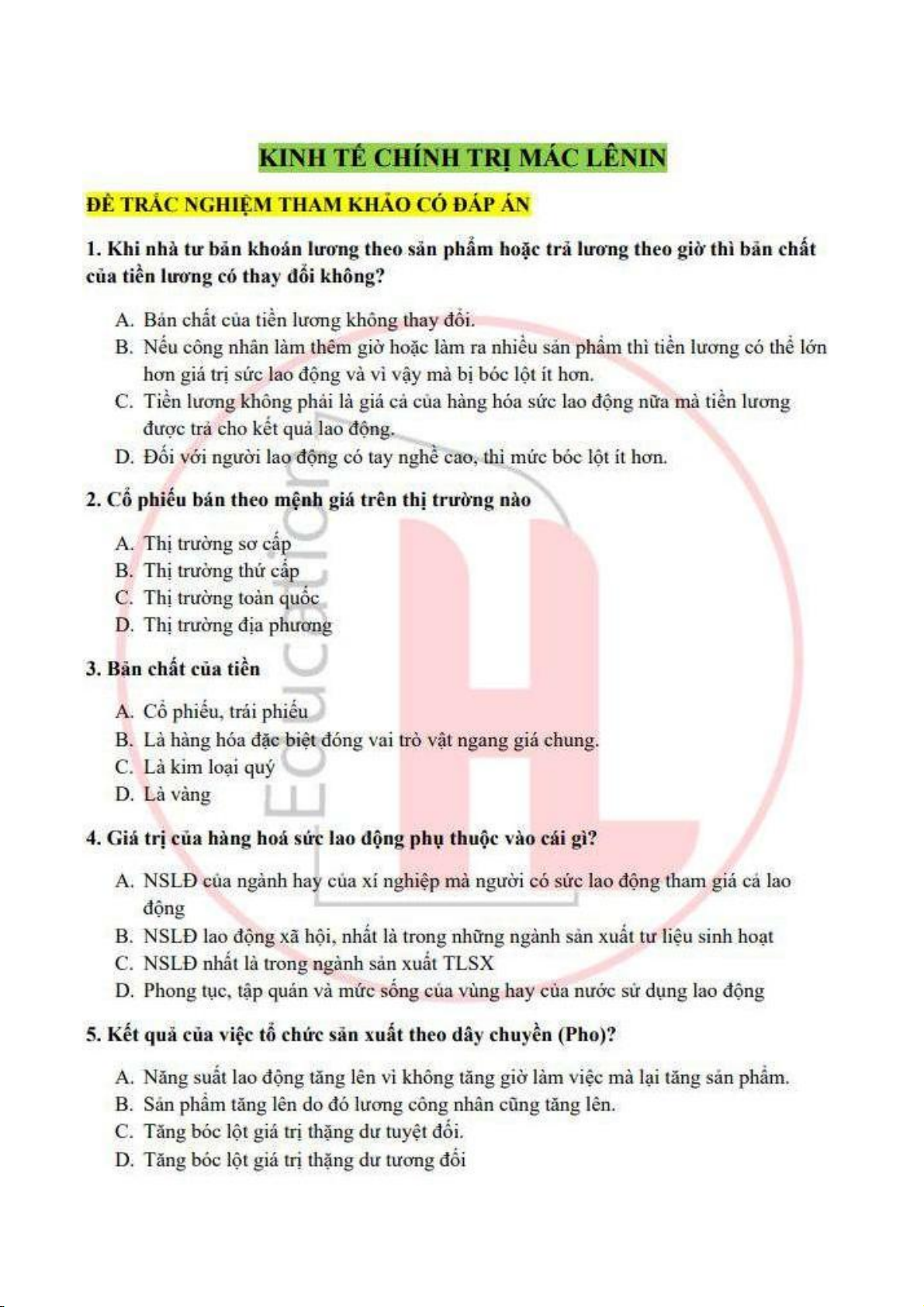 Đề cương môn Kinh tế chính trị Mac Lênin - trường đại học kinh tế Quốc dân.
