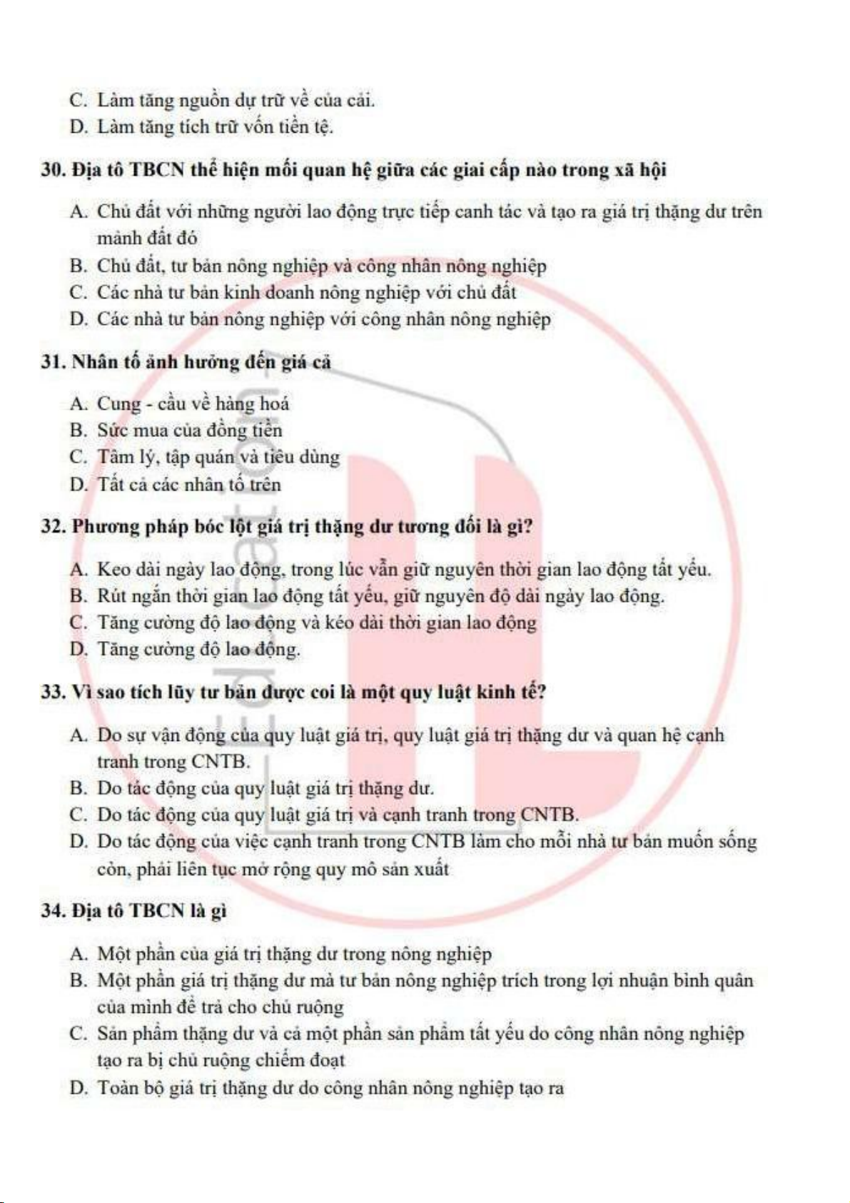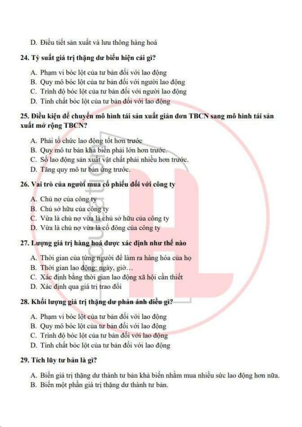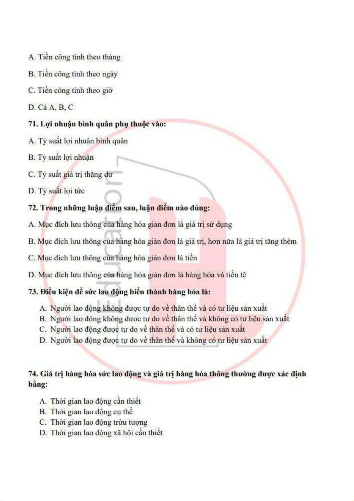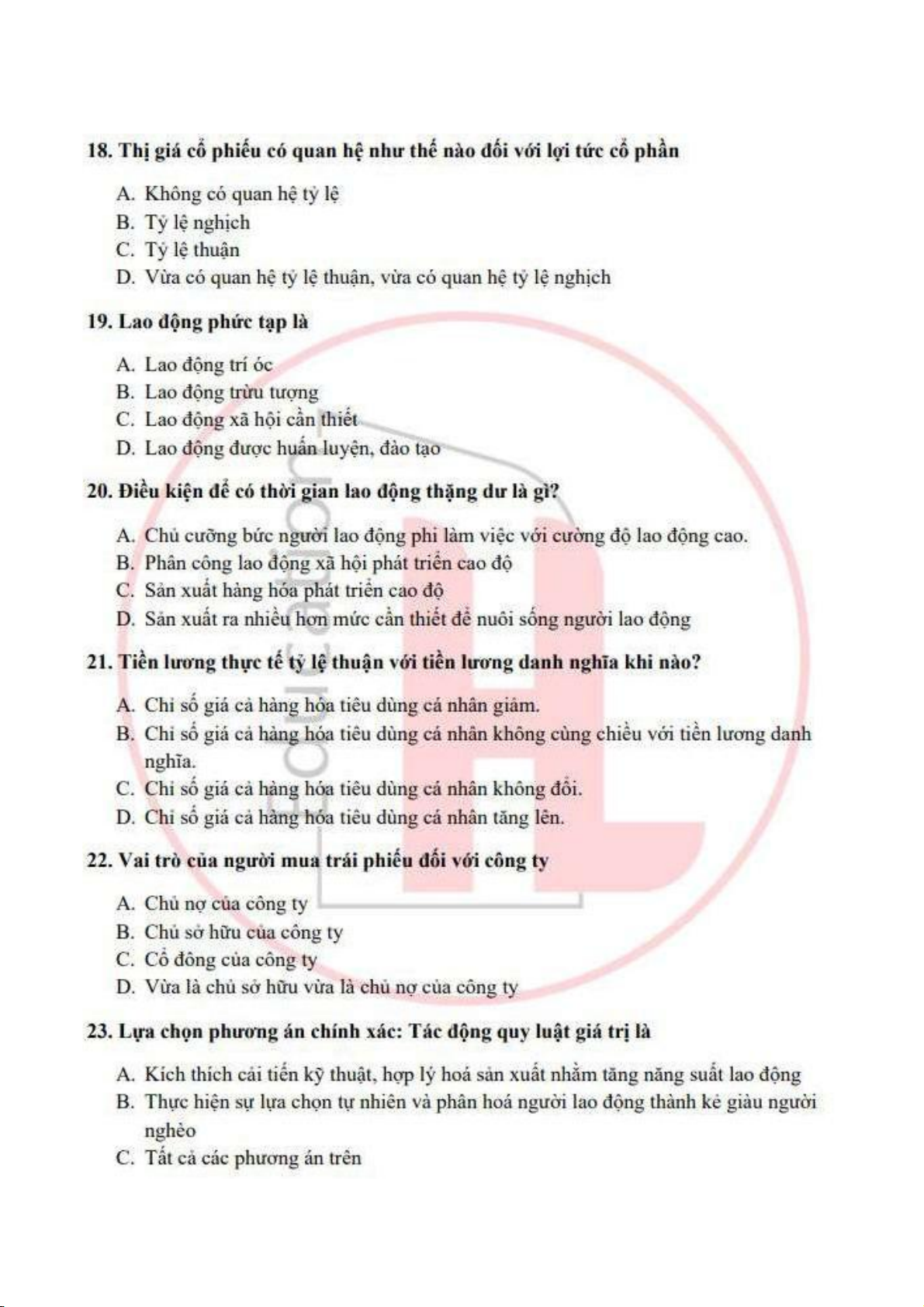 đề ôn tập trắc nghiệm kinh tế chính trị