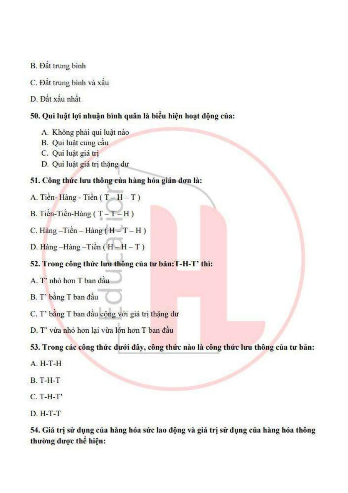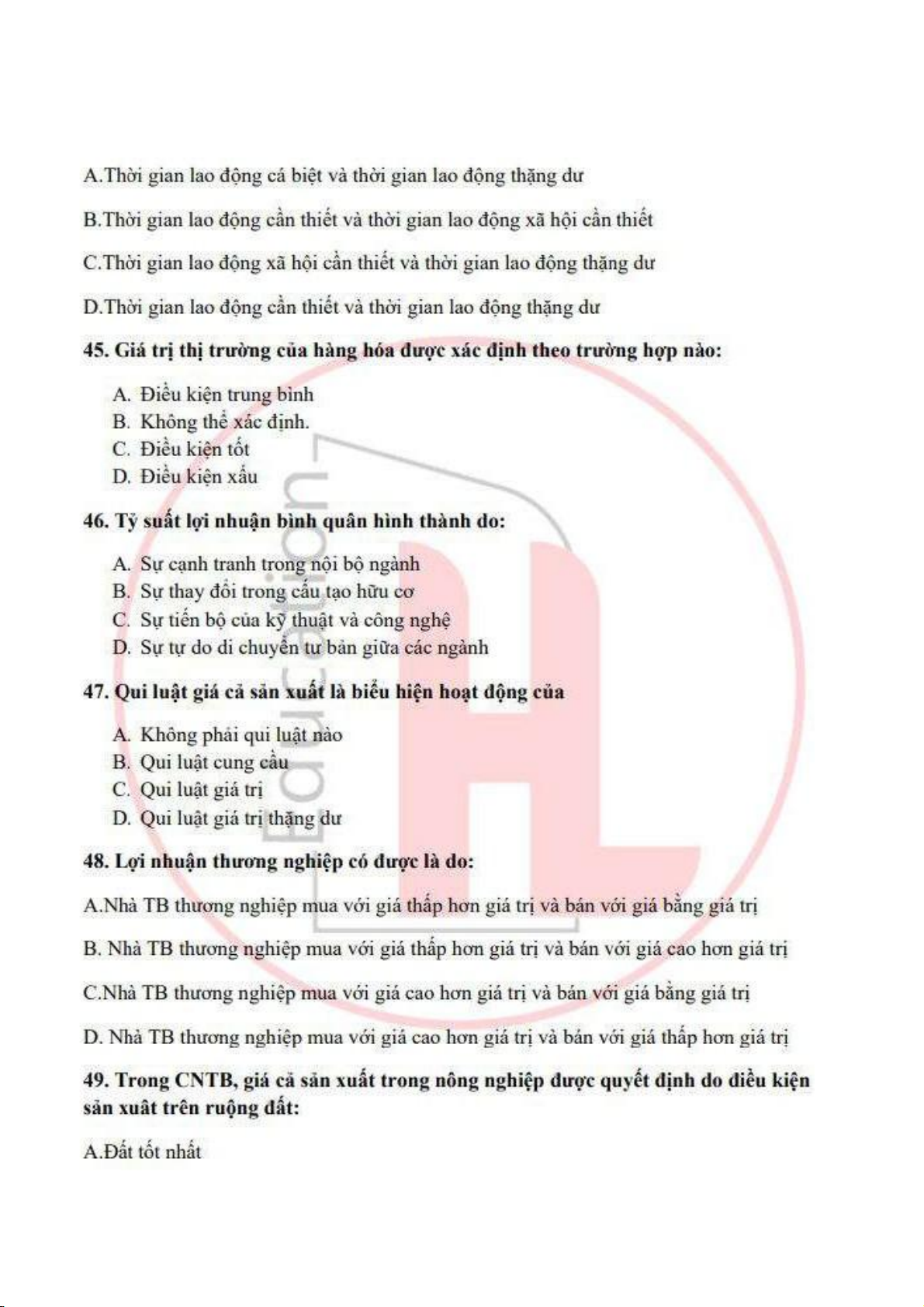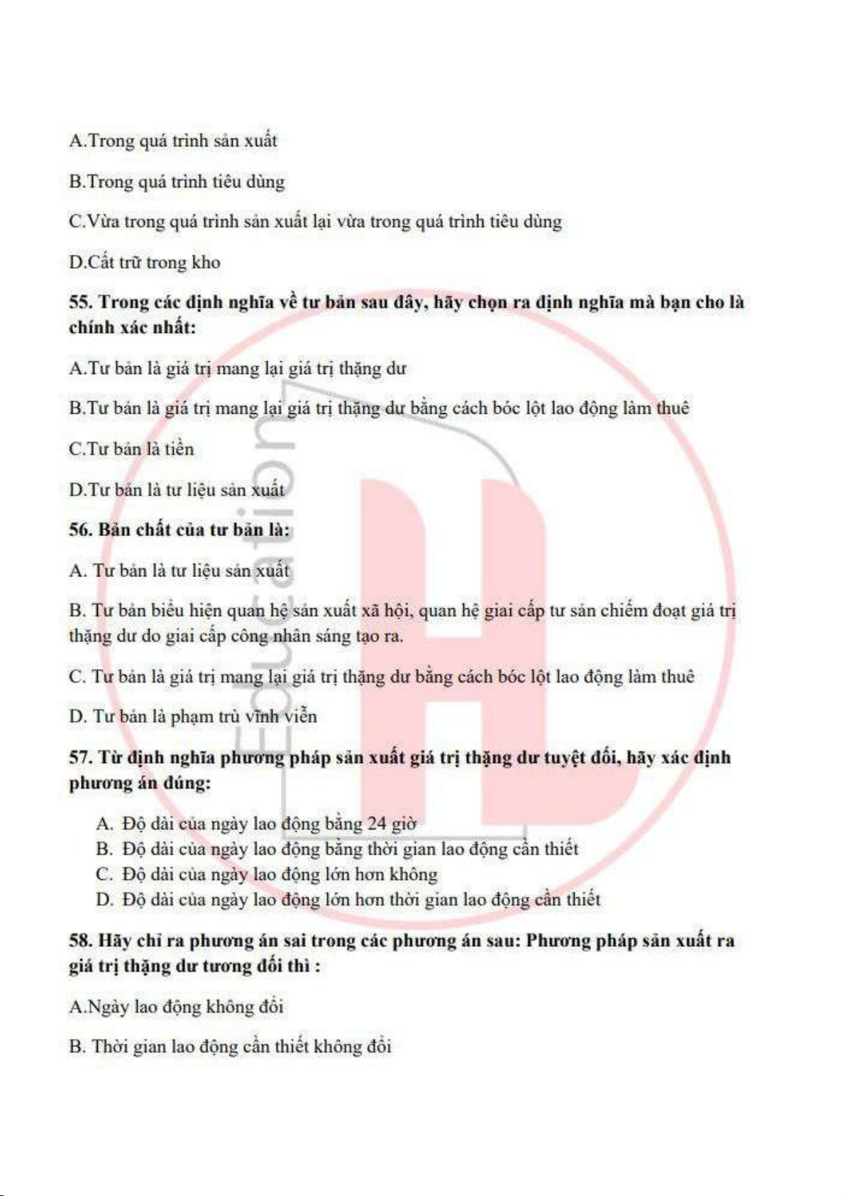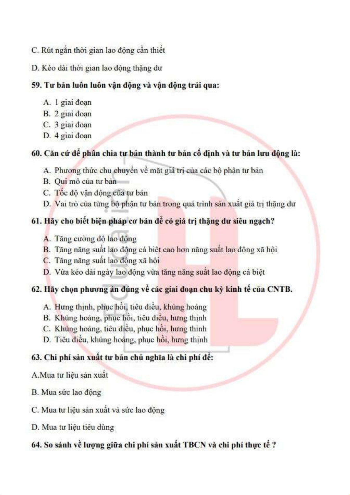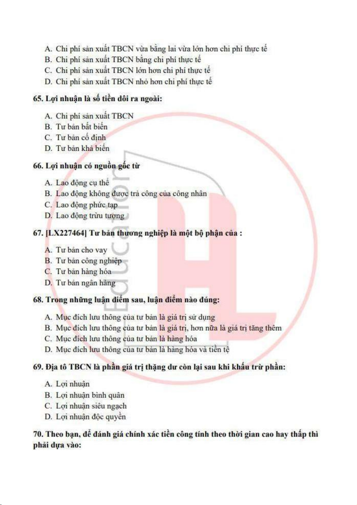 đề ôn tập trắc nghiệm kinh tế chính trị