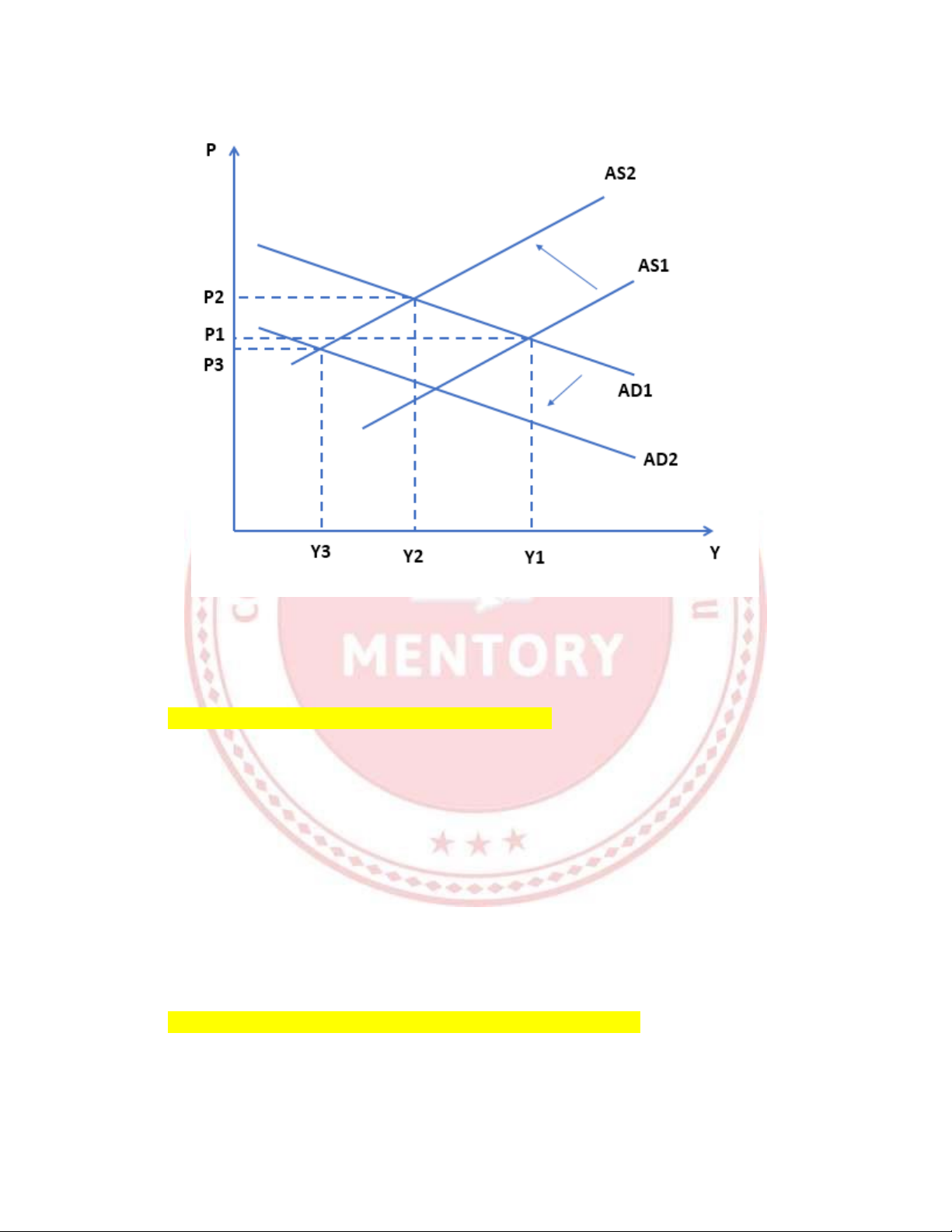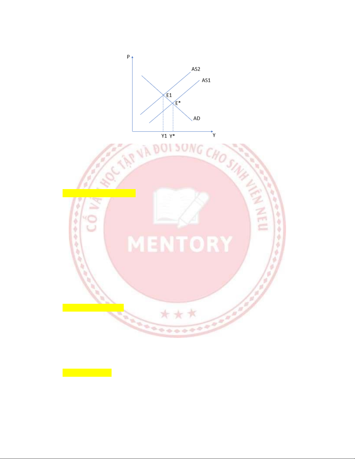 Giải thích: Hiện tượng đình làm/lạm phát kèm suy thoái xảy ra khi gặp một cú sốc cung bất lợi