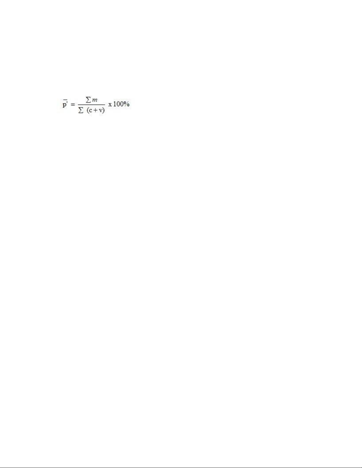 p'=m/(c+v).100%=(m/v)/(c/v+1)=m'/(c/v+1)