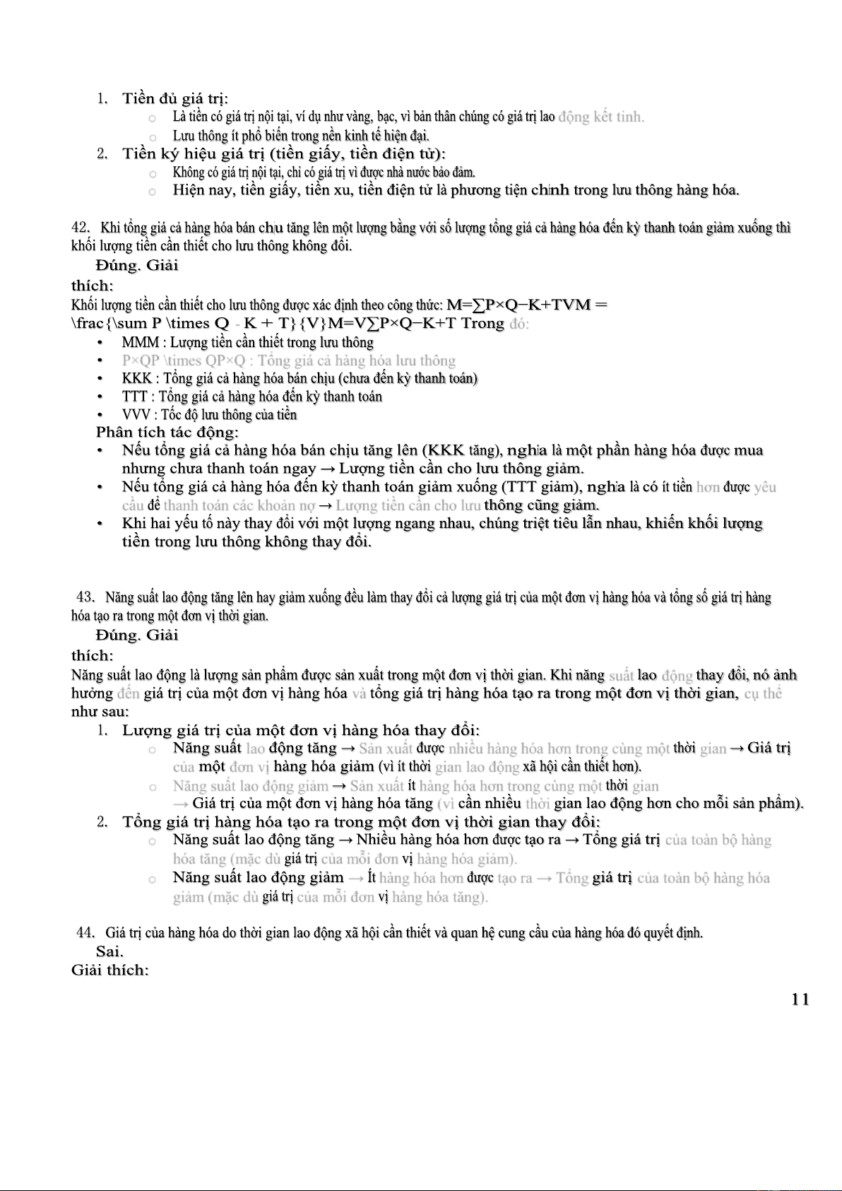 P×QP \times QP×Q : Tổng giá cả hàng hóa lưu thông hơn yêu cầu thanh toán các khoản nợ