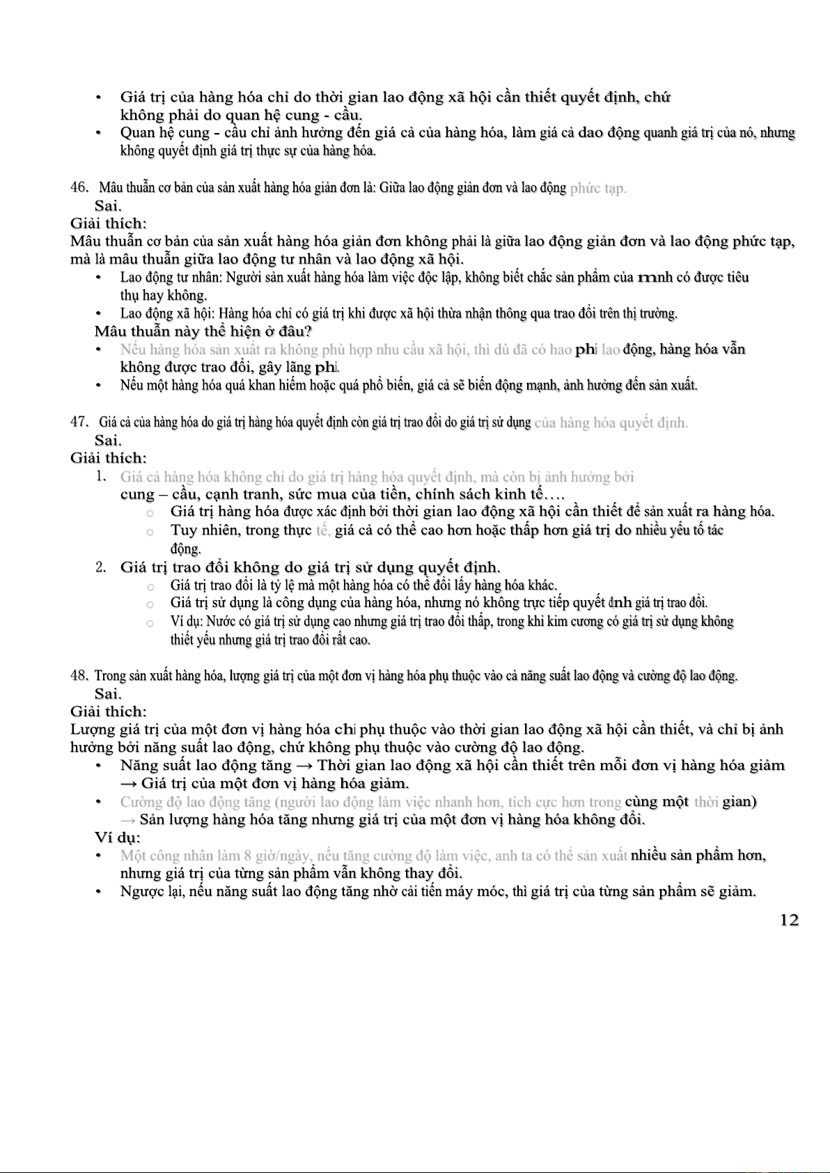 Trong sản xuất hàng hóa giản đơn: Giá trị hàng hóa do lao động cá nhân của người sản