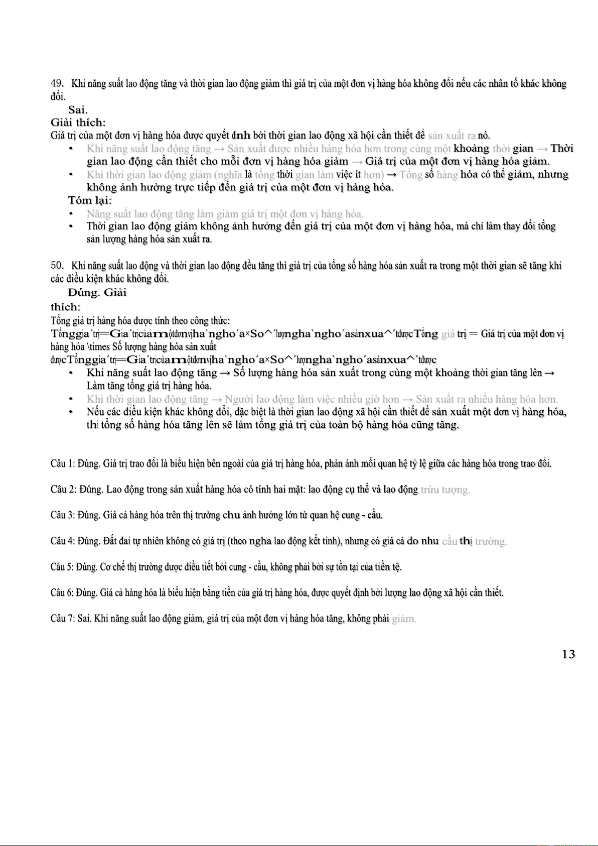 giá trị của mỗi sản phẩm không thay đổi, trừ khi năng suất lao động cũng tăng. o o o o