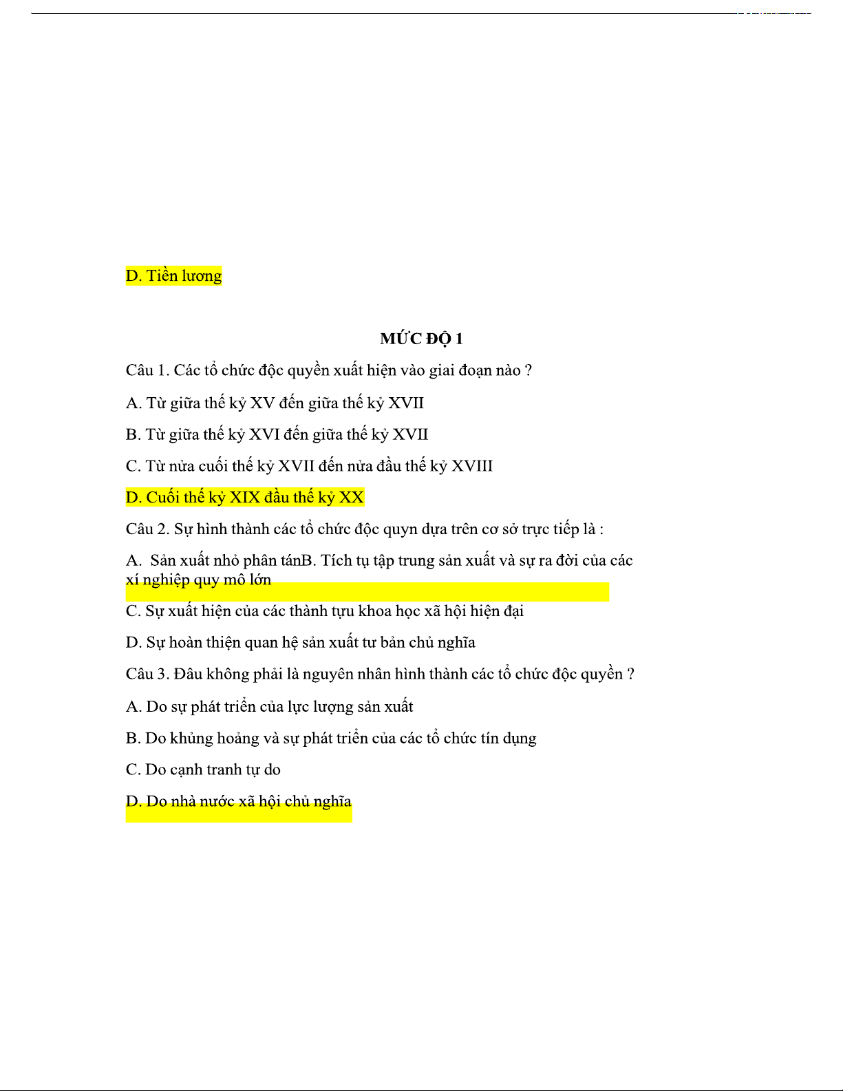 D. Chủ nghĩa tư bản độc quyền MỨC ĐỘ 2