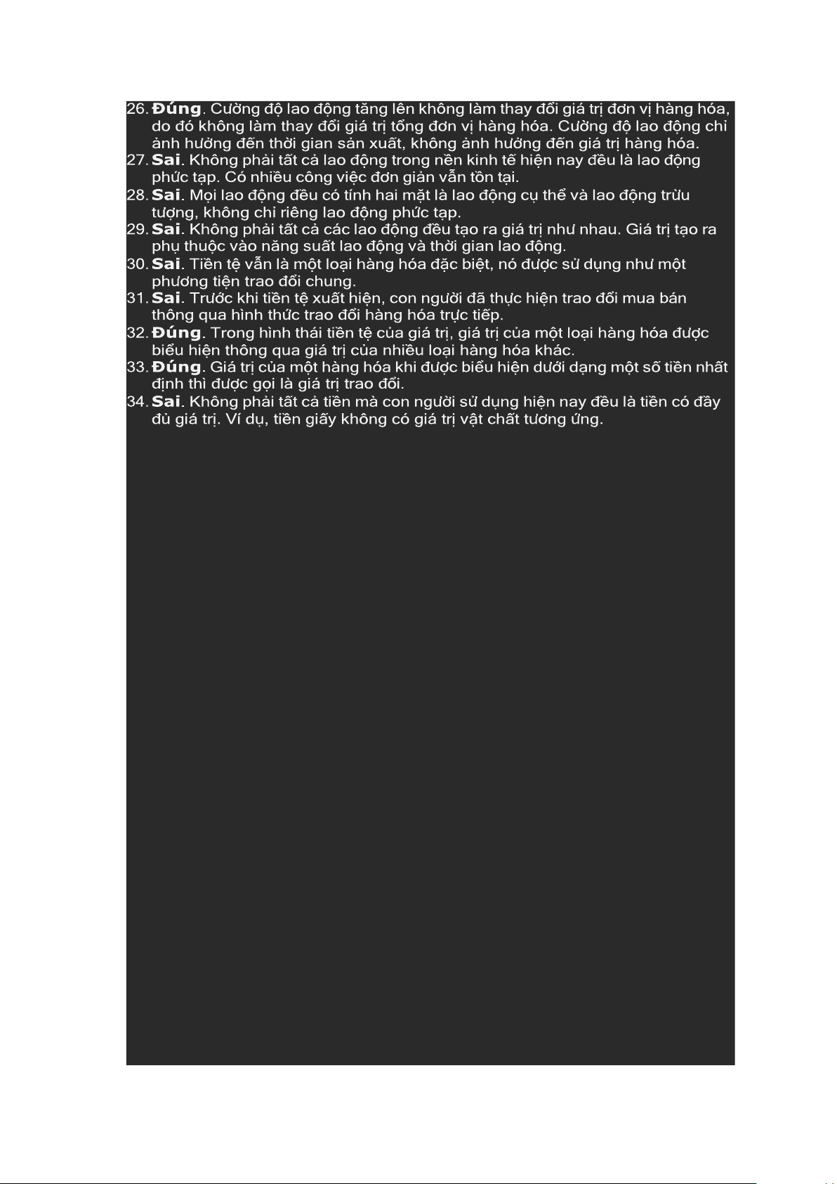 54. Sai. Theo quy luật giá trị, giá cả và giá trị trao đổi không nhất thiết phải biến