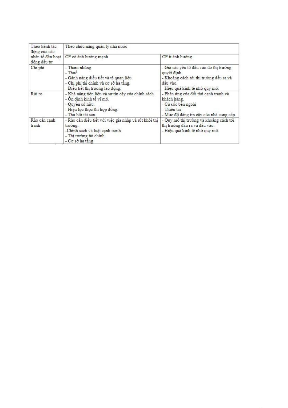 yếu yếu này có ảnh hưởng tới việc lựa chọn lĩnh vực đầu tư và khả năng sinh lời của dự án.