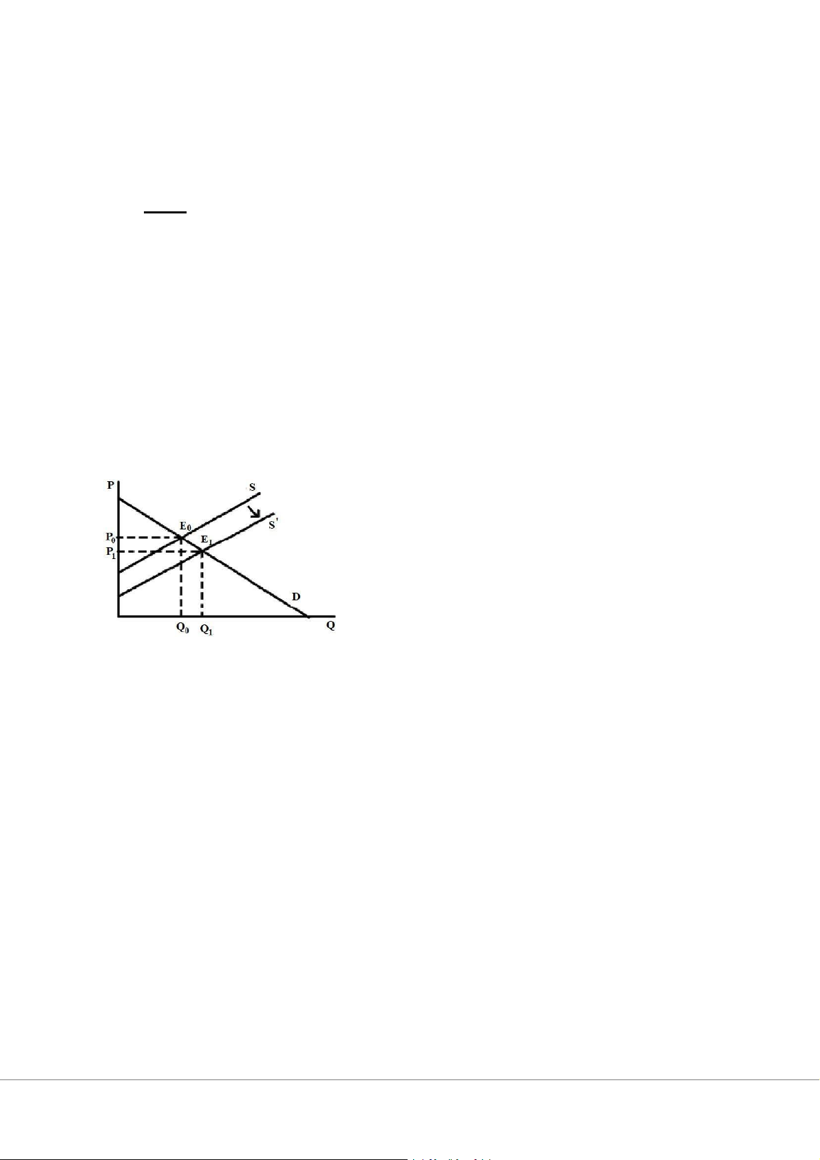 +) NSX sản xuất hàng hóa ít hơn tại mọi mức giá, làm đường cung dịch chuyển sang trái: S → St