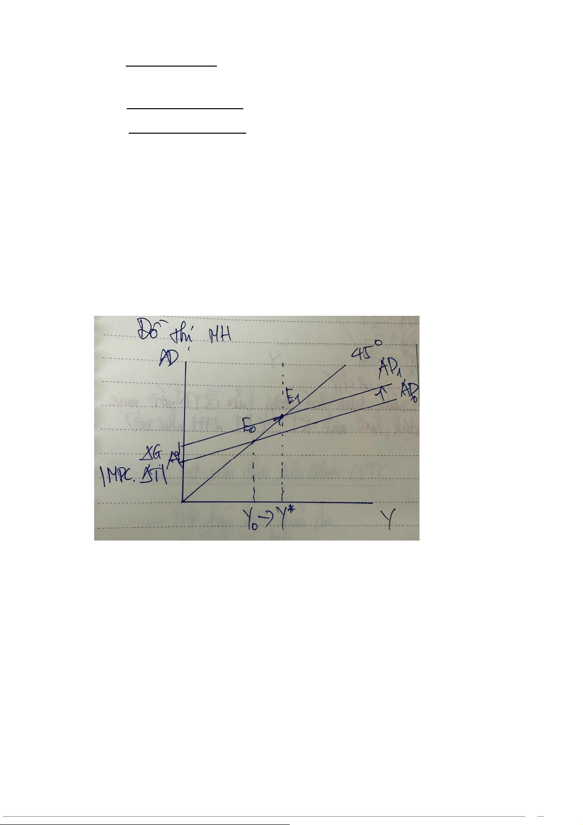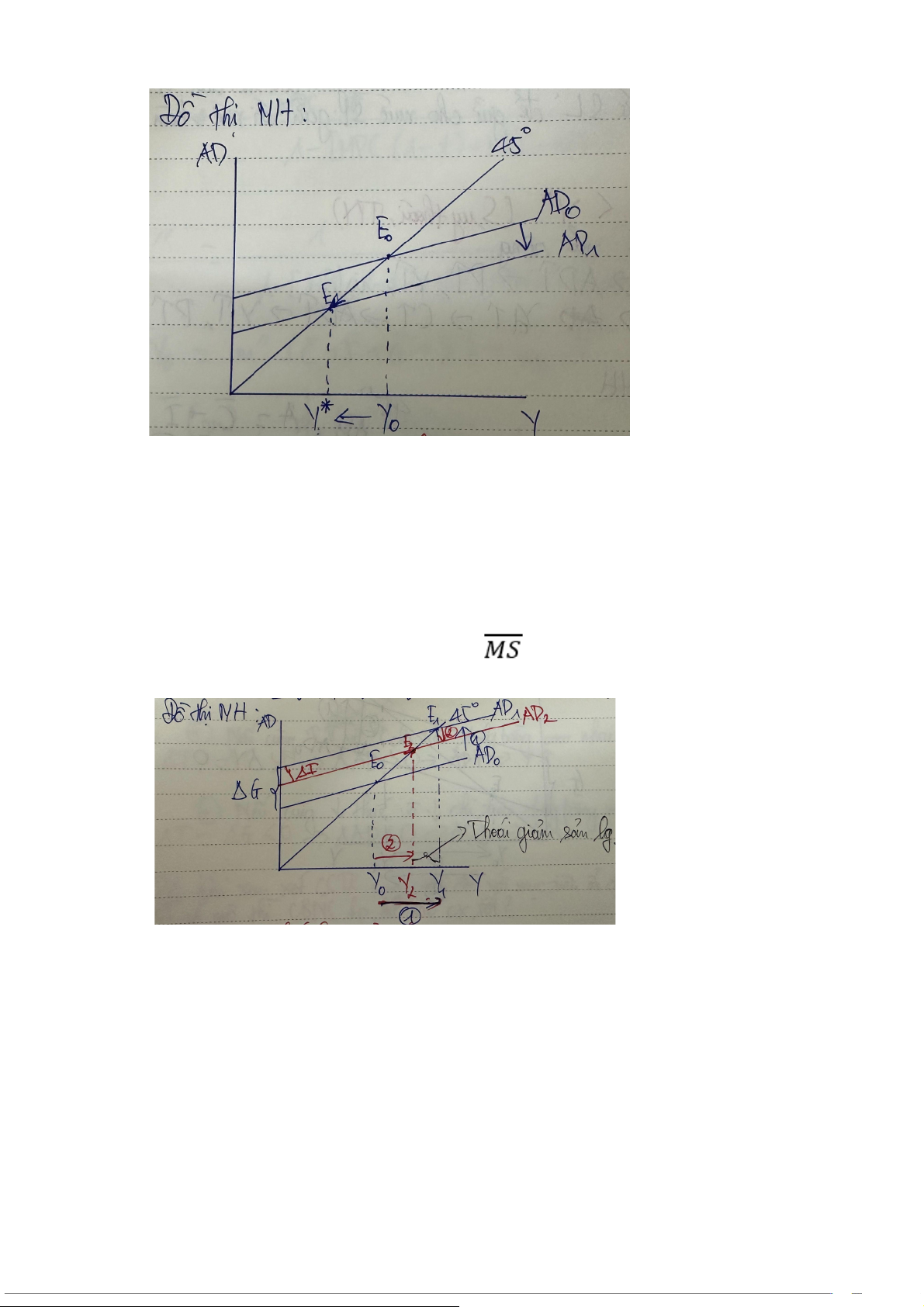 Câu 27 (1 điểm): Hãy giải thích về hình dáng của đường tổng cung trong 2 trường hợp sai: TH1: Y < Y*