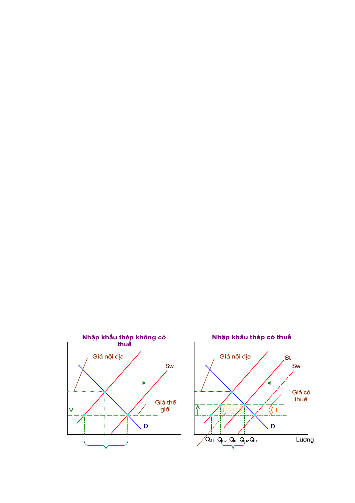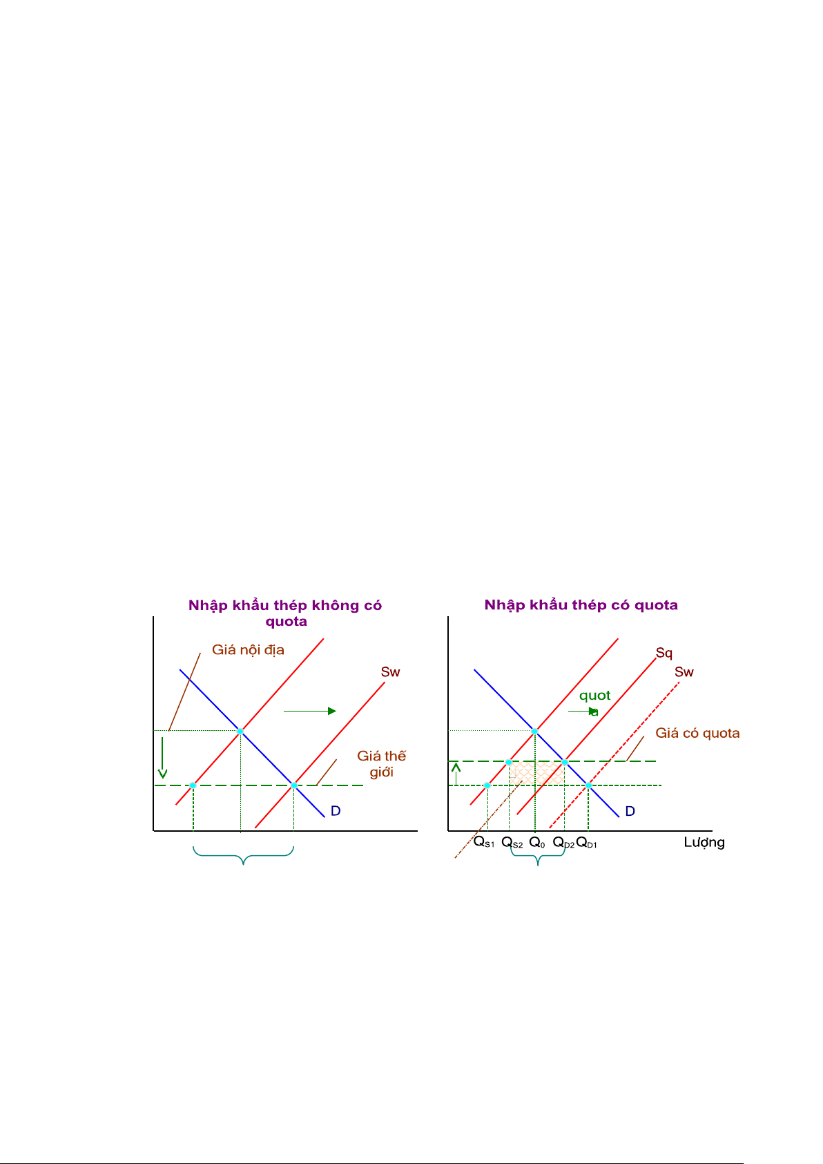 đánh thuế và qui định hạn ngạch nhập khẩu. Cả hai chính sách đều làm tăng giá thị trường nội
