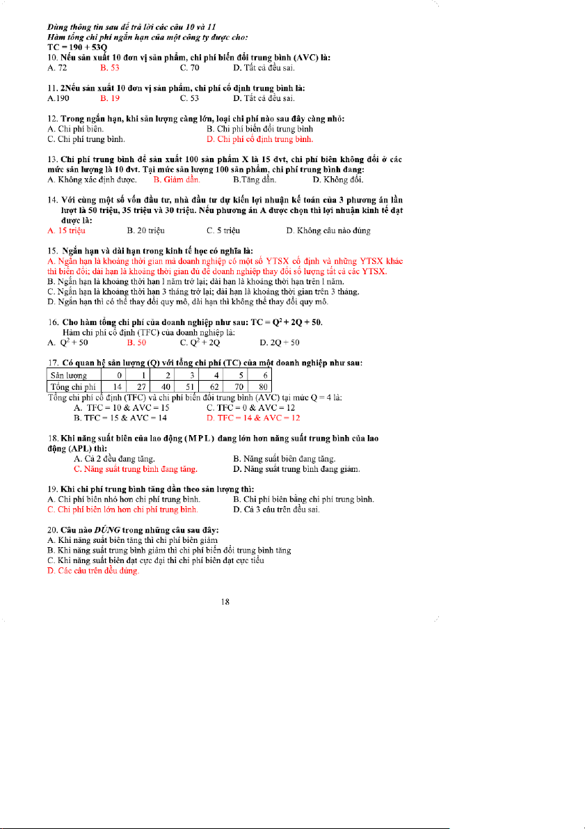Đề cương môn kinh tế vi mô- Trường Đại học bách khoa - Đại học đà nẵng.