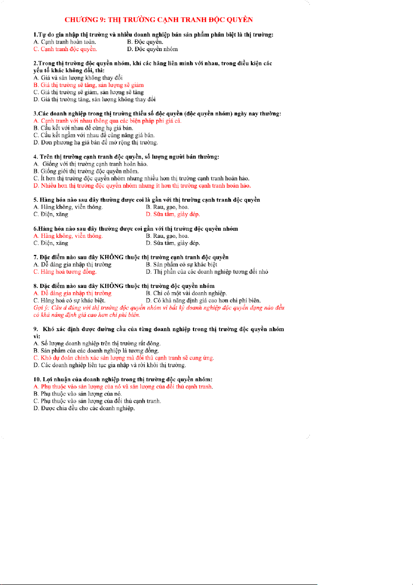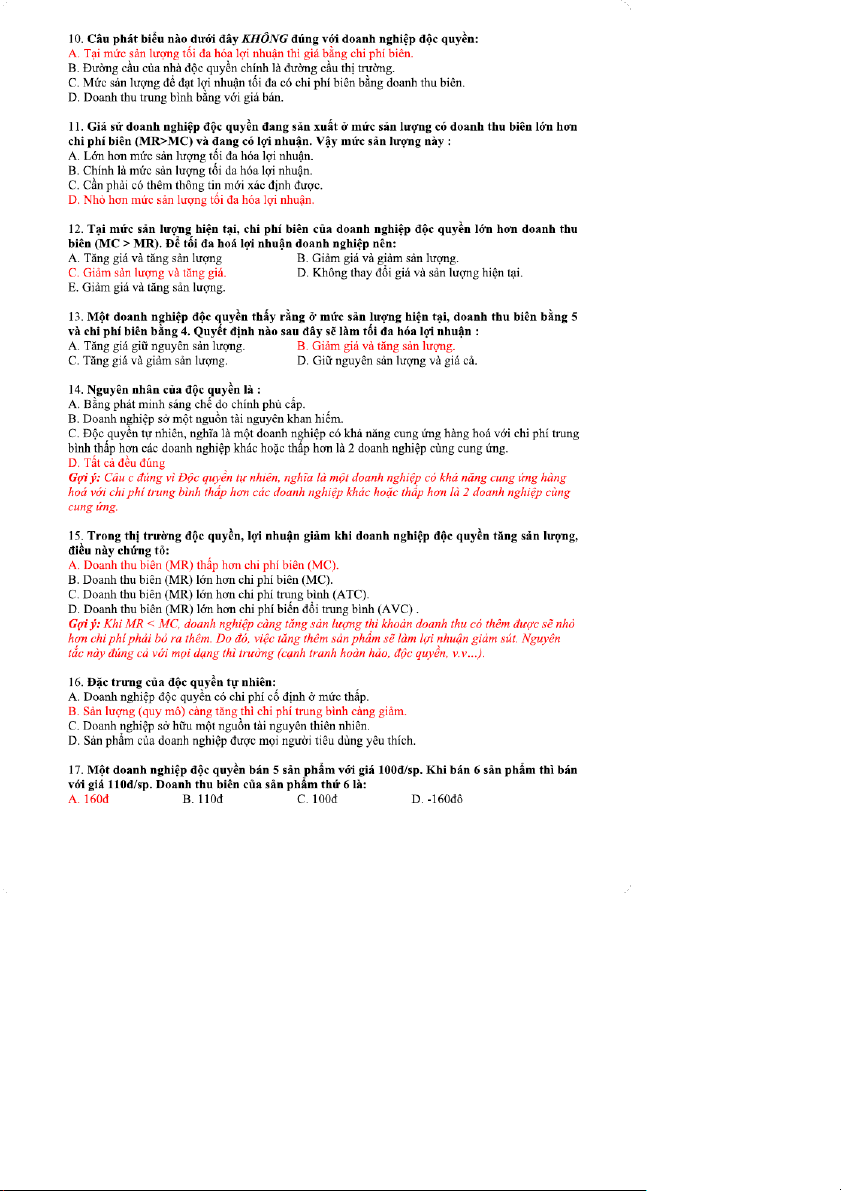 Môn: Kinh tế vi mô ( KTVM1) 40 tài liệu