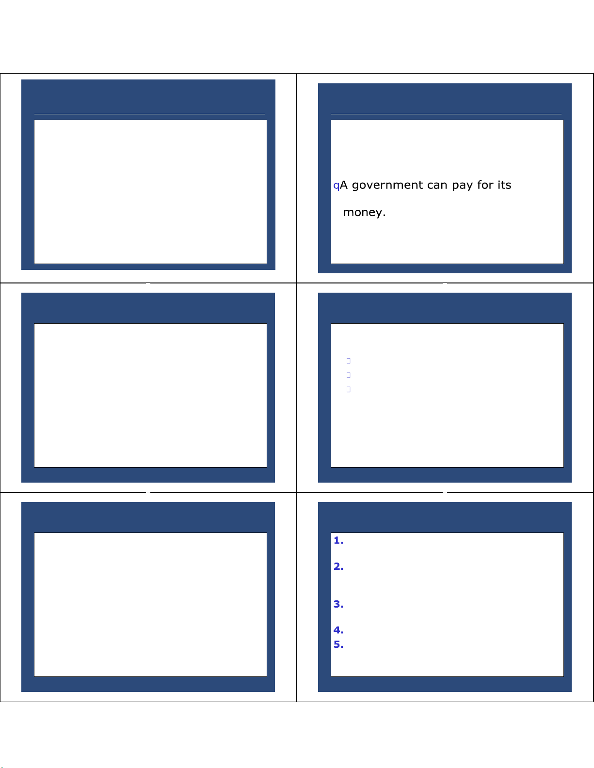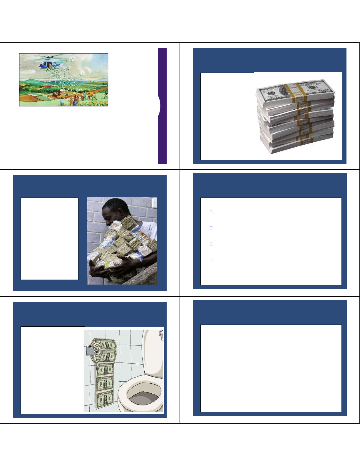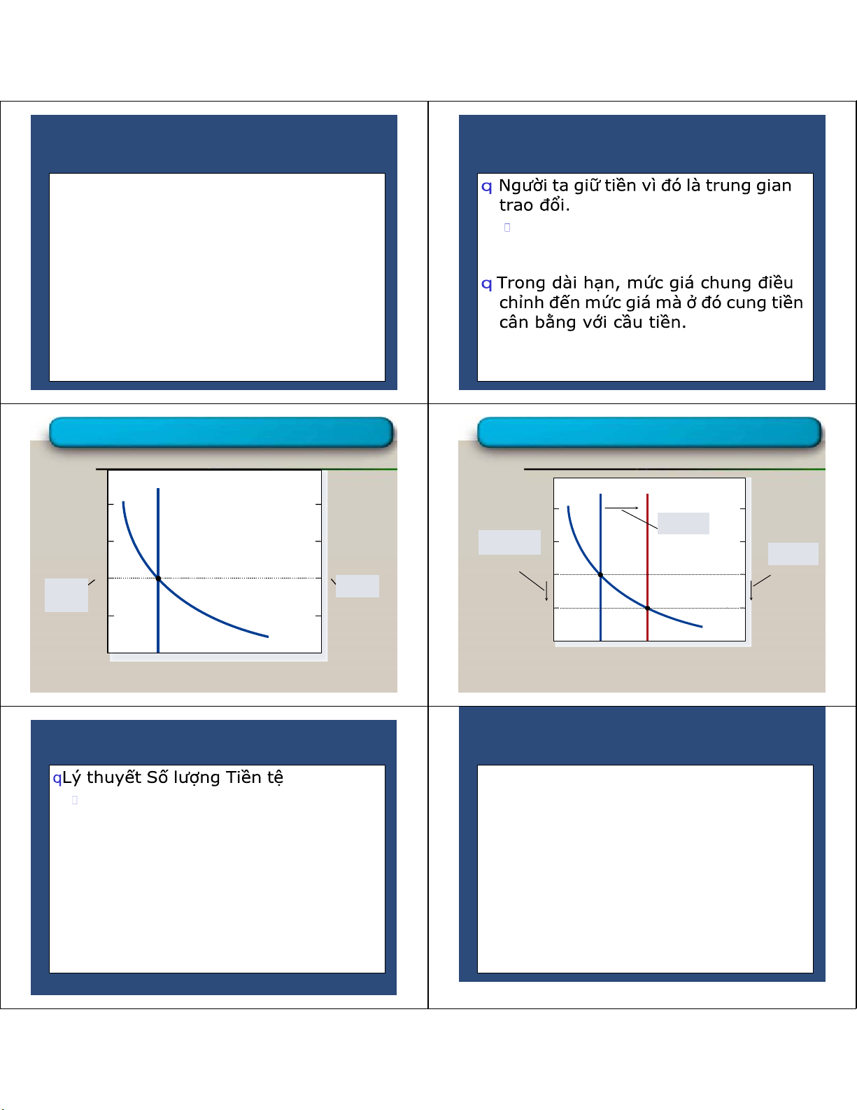 của tiền 1/P MS1 MS2 P (Cao) 1 1 (Thấp) (Cao) 1 1 (Thấp) 1. Tăng cung 3/ tiền... 4 1.33 3/4 1.33 2 ........ làm giảm giá trị của tiền... 3 ..... và tăng A A 1 mức giá. 1/ /2 2 2 2 Mức giá Cân bằng cân bằng giá trị B 1/4 4 1/4 4 của tiền Cầu tiền Cầu tiền (Thấp) (Cao) 0 M1 M2 Lượng tiền (Thấp) 0 (Cao) Lượng tiền Lượng tiền cố định bởi NHNN
