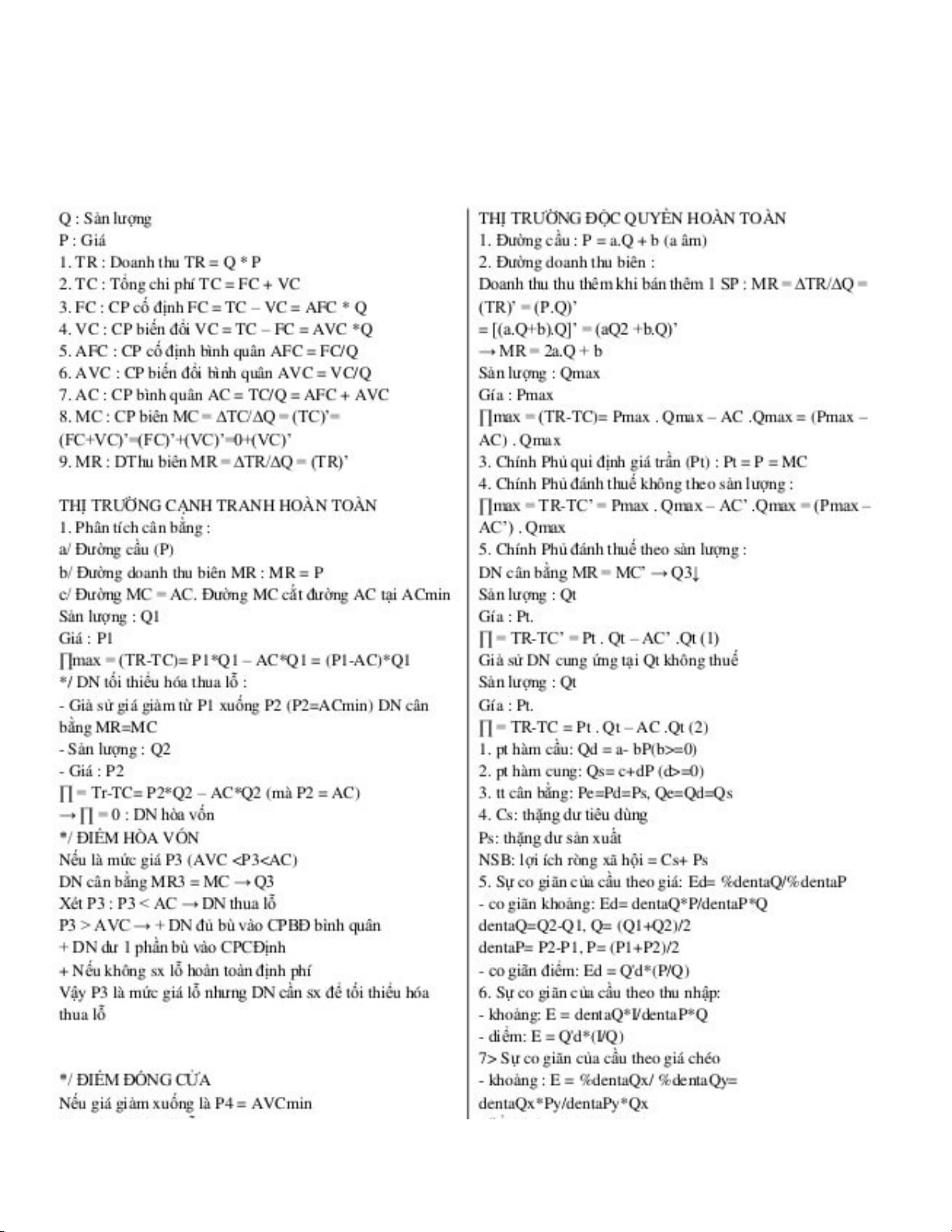 Đề cương môn kinh tế vi mô- Trường Đại học bách khoa - Đại học đà nẵng.