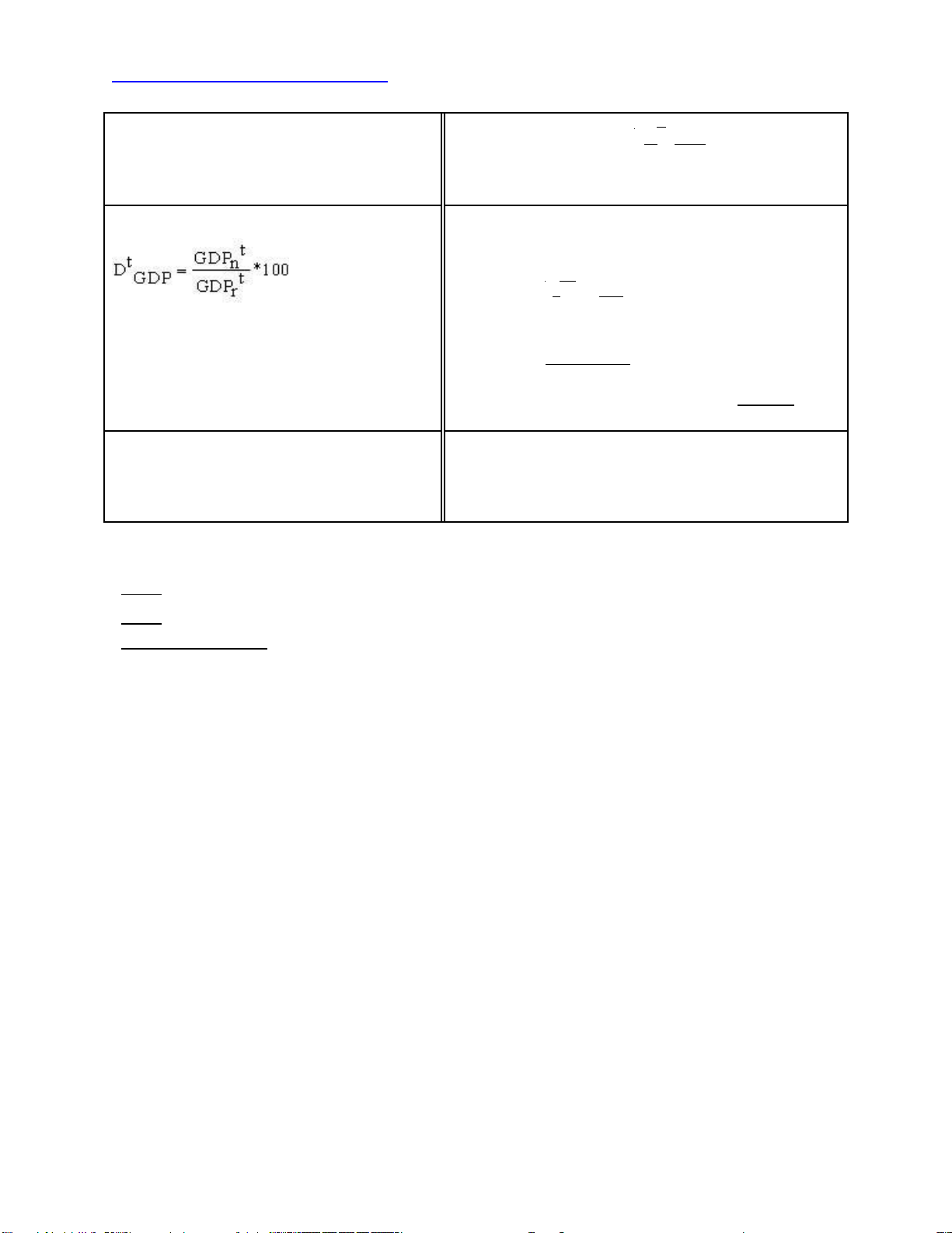 ∙ Tính theo chỉ số điều chỉnh GDP: πt= .100% 𝐷(𝐺𝐷𝑃(𝑡−1)) Trong đó: D t