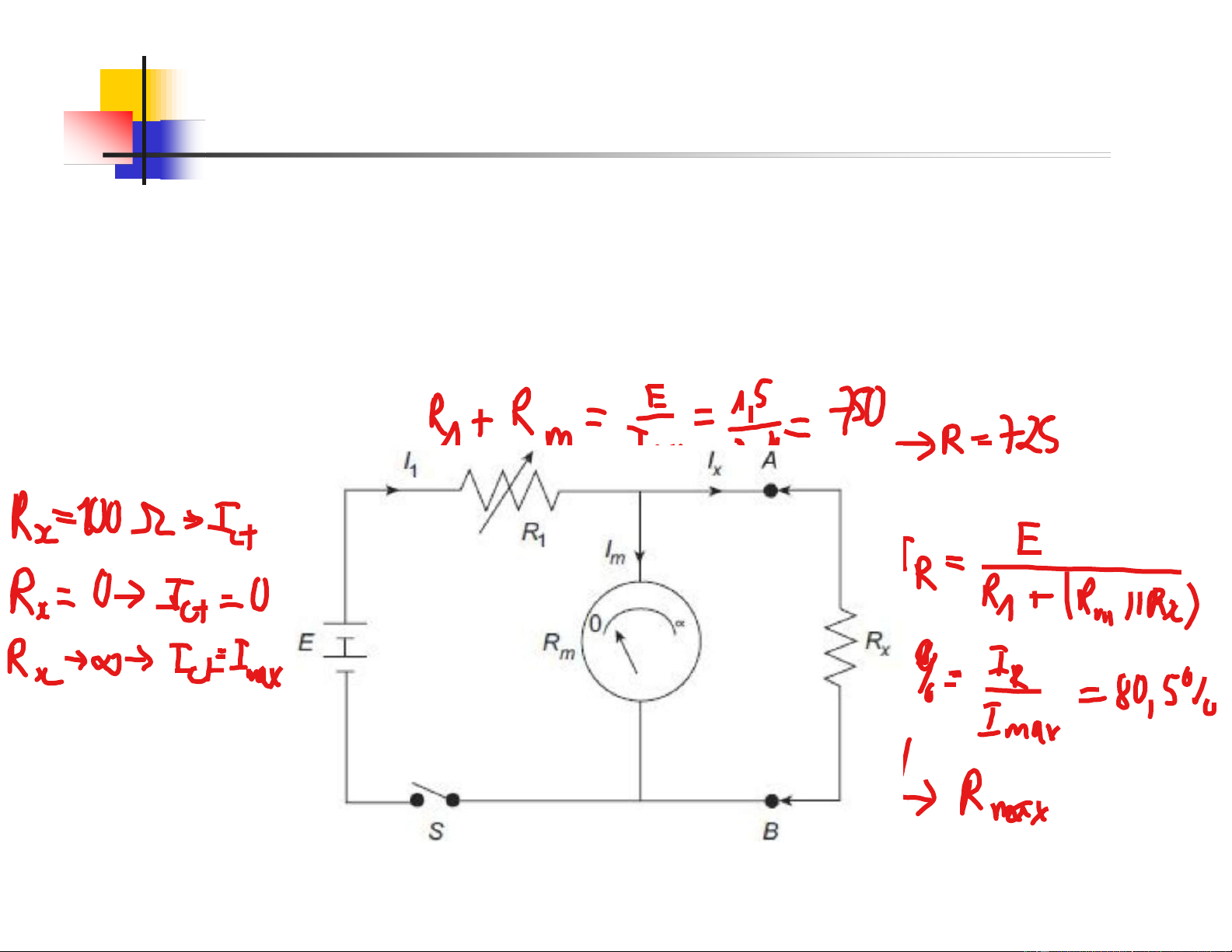 Khi R ∞ (chưa mắc R vào mạch đo) dòng qua chỉ thi ̣lớn nhất x x