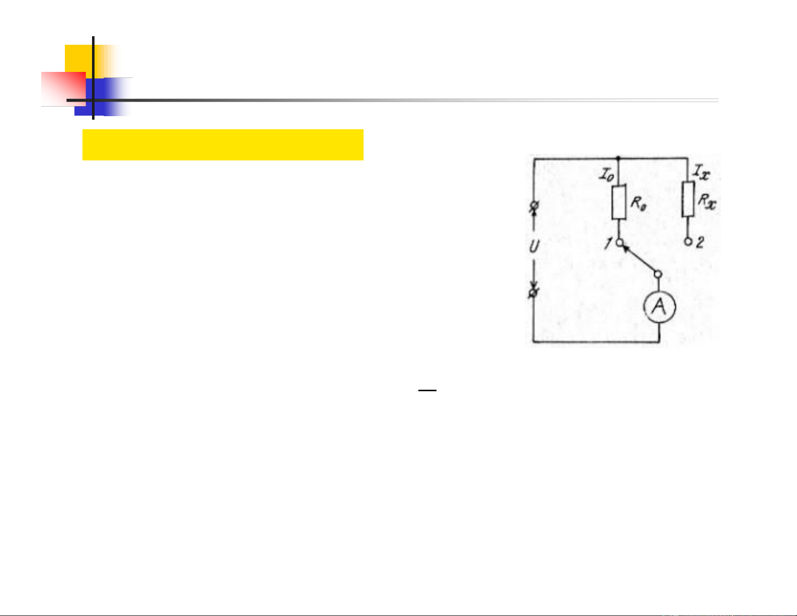 Giá trị điện trở cần đo 𝑈 𝑈 𝑈 𝐼 𝑥 0 𝑥 𝑥 = 𝐼0 ⫘ = ⫘ 𝑅𝑥 = . 𝑅0 𝑅𝑥 𝑅0 𝑈0