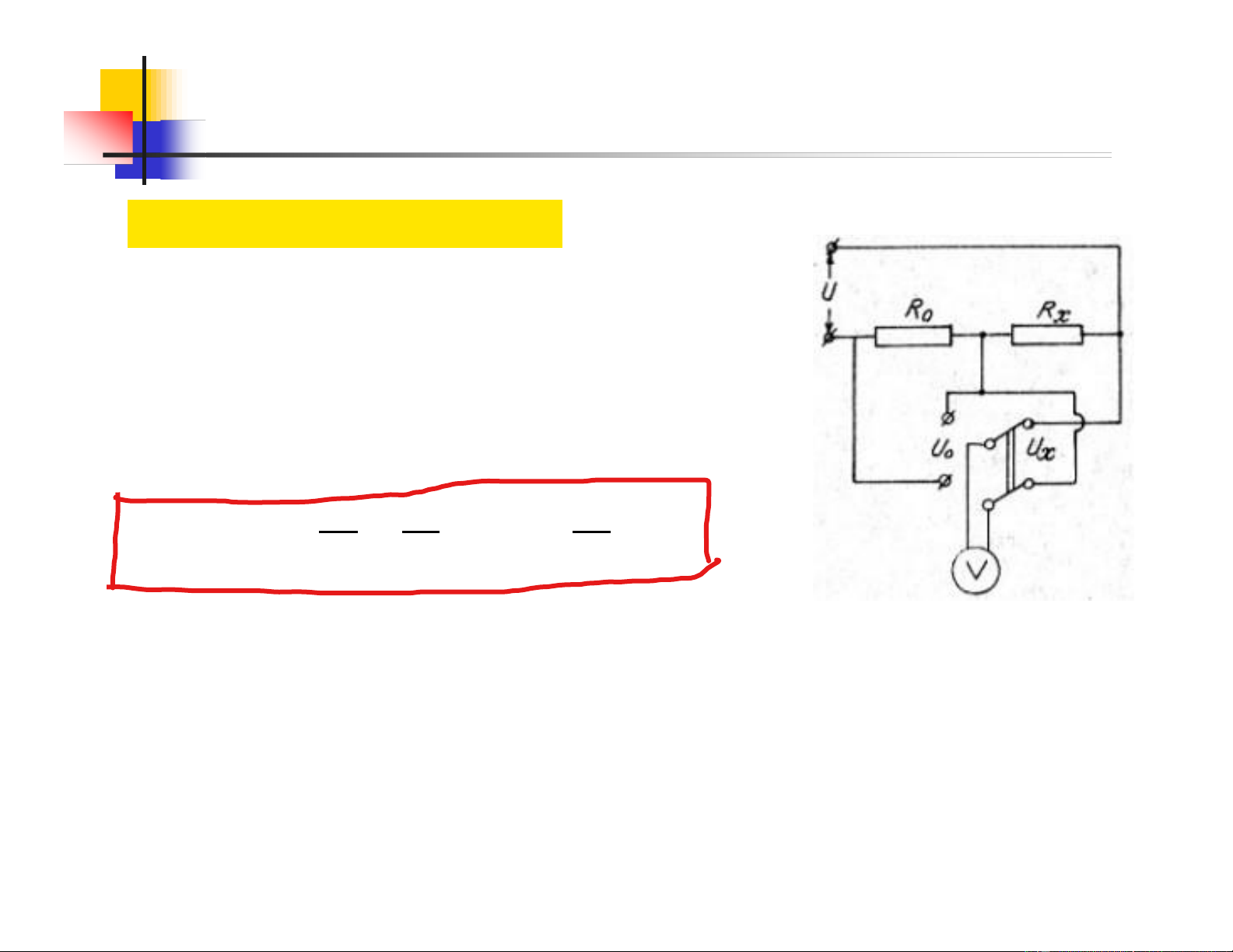 Dùng vôn mét & điện trở mẫu Điện trơ mắc nt với điện trơ ̉ R ̉ mẫu R x 0