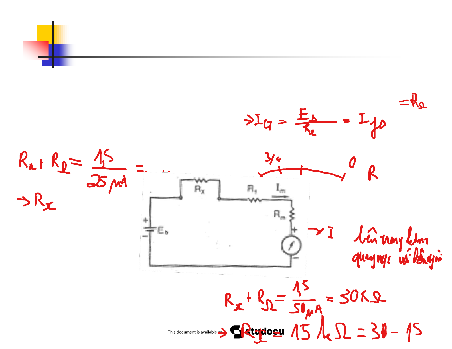 Biết điện trở Rx=Rh=2000 khi kim điện kế ở chính giữa thang đo. Bài tập